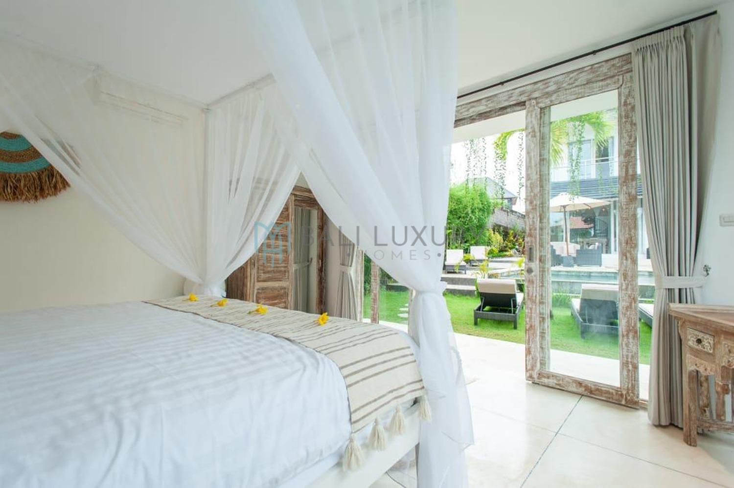 A spacious 4-bedroom villa in the highly sought-after Bumbak area of Umalas. This unique property features 2 outdoor-style bedrooms and 2 indoor bedrooms located on the second floor, offering a perfect blend of tropical living and comfort. Set on a large garden, the villa boasts a big private swimming pool, ideal for relaxation and entertaining. Strategically located just 4 minutes from Pepito Market and only 9 minutes to Berawa Beach.