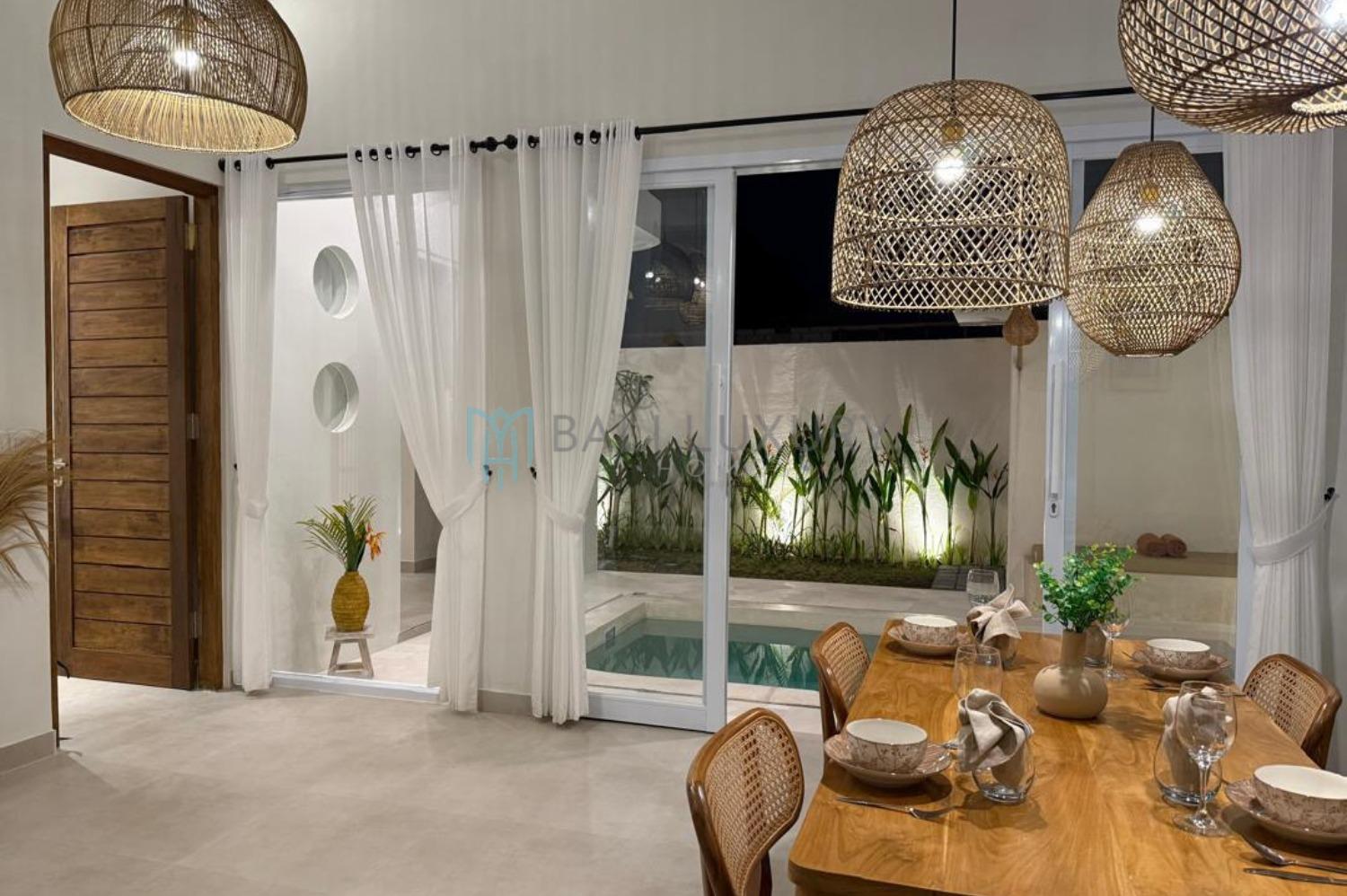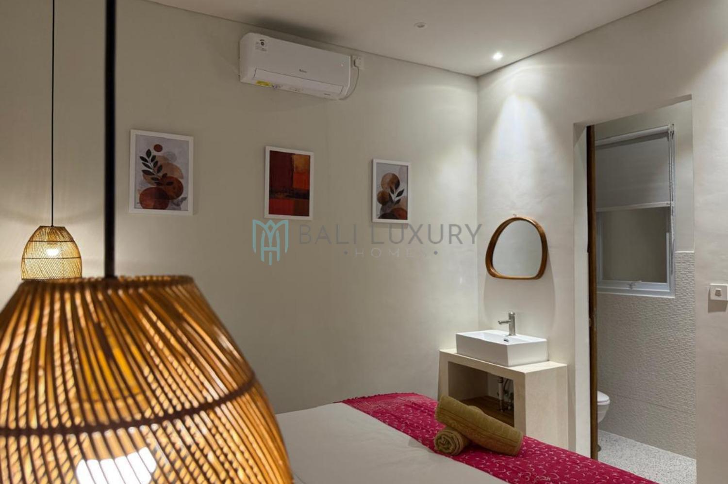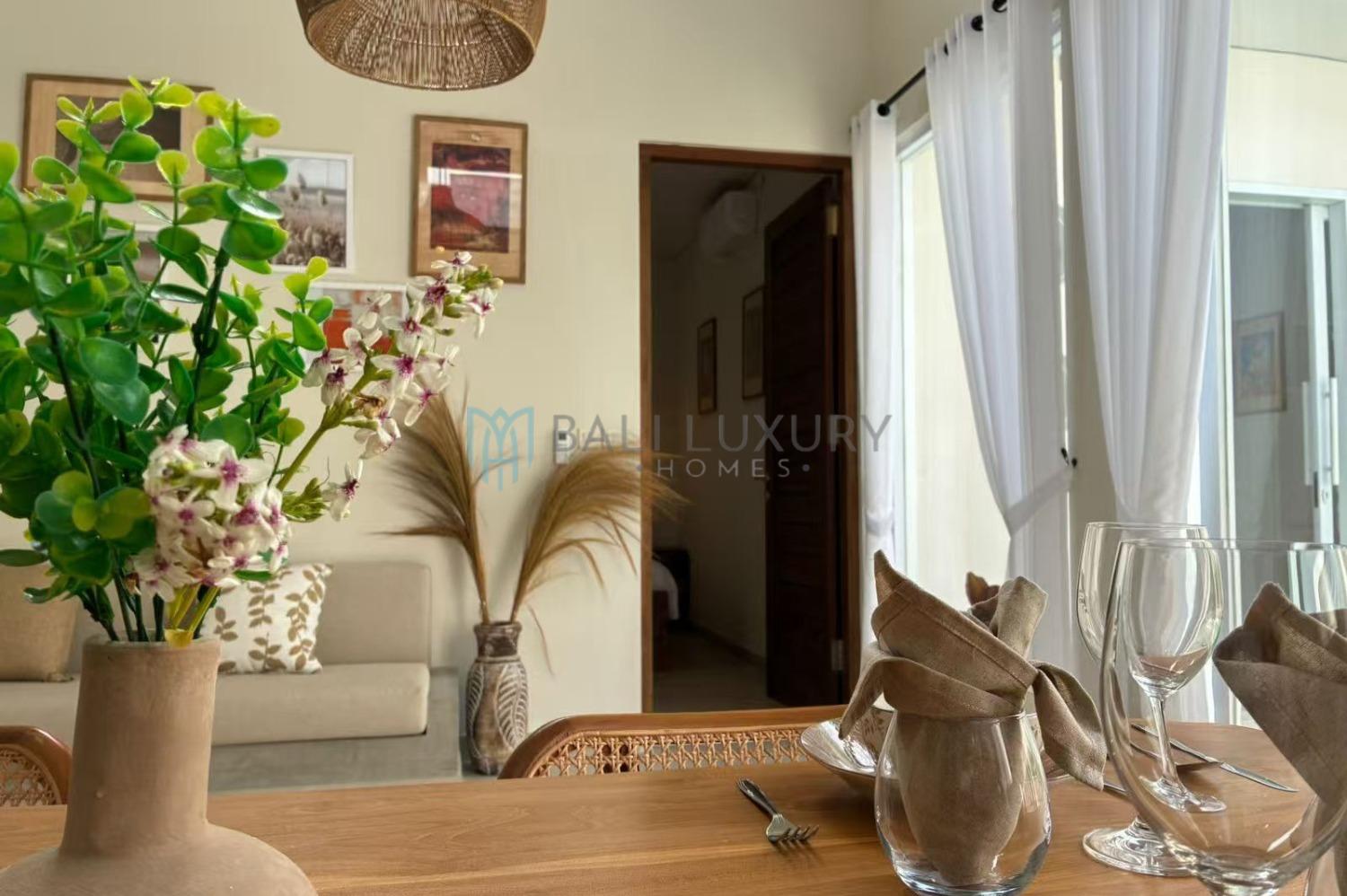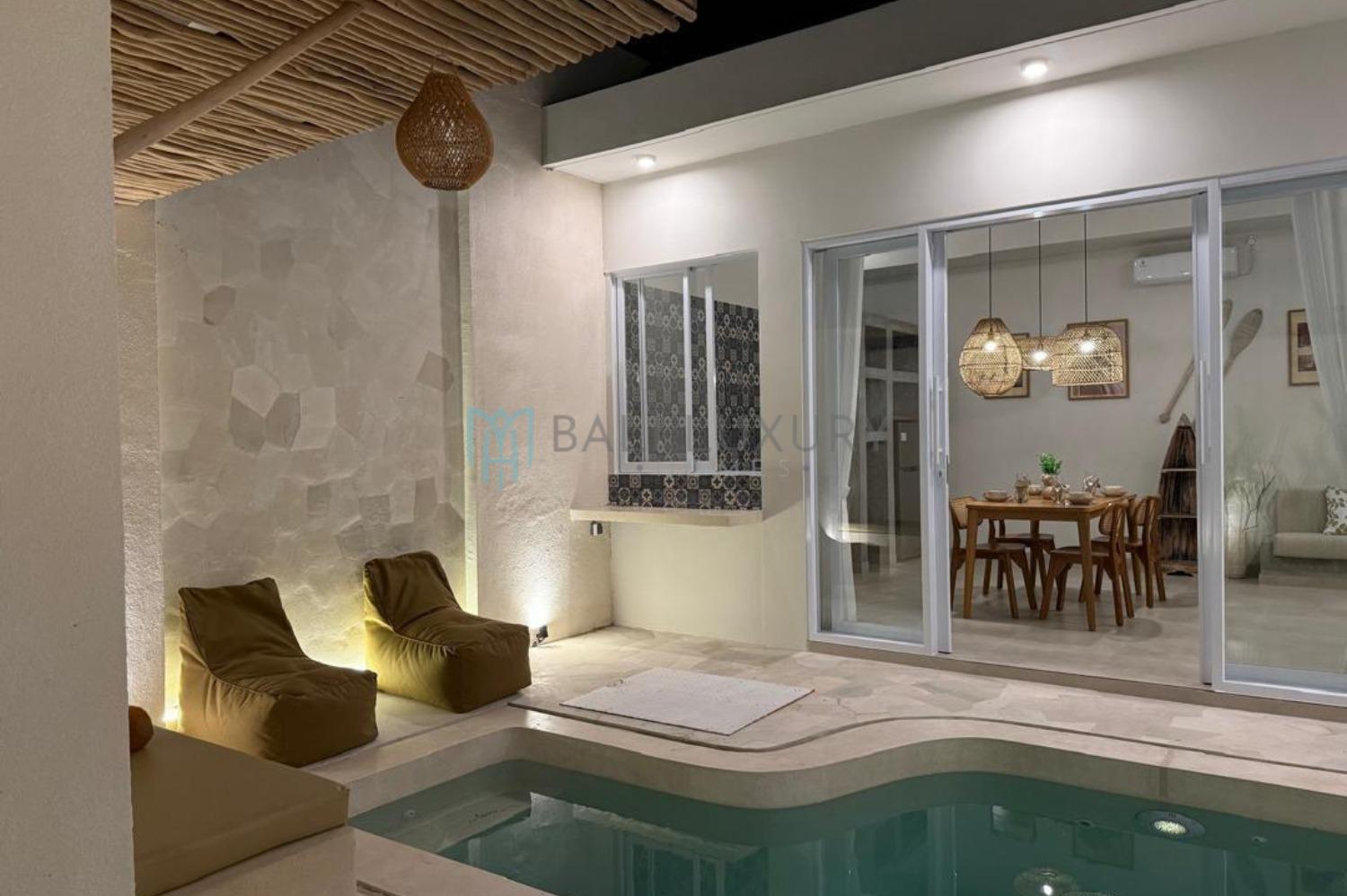 A cozy modern 2-bedroom villa designed to feel just like home. It features an enclosed living area for comfort and privacy, a private pool for relaxing moments, and comes fully furnished with complete kitchen equipment, making it perfect for a comfortable and convenient stay.