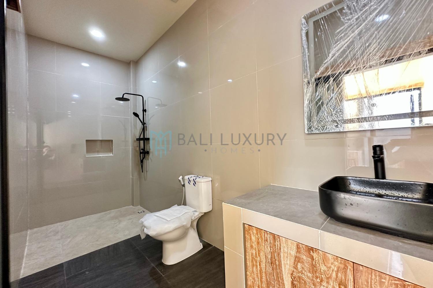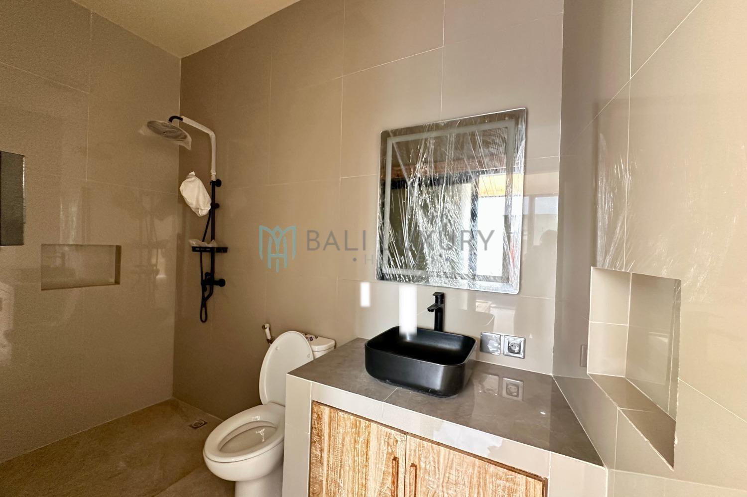Escape to this cozy 2-bedroom villa nestled in a peaceful area. Each bedroom features its own ensuite bathroom, providing both comfort and privacy throughout your stay. The open living space seamlessly blends indoor and outdoor living, perfect for enjoying the tropical breeze and laid-back Bali lifestyle. Conveniently located just a 3-minute drive from Pepito Market and only 10 minutes from the serene shores of Seseh Beach, this villa offers the ideal balance of tranquility and accessibility.
