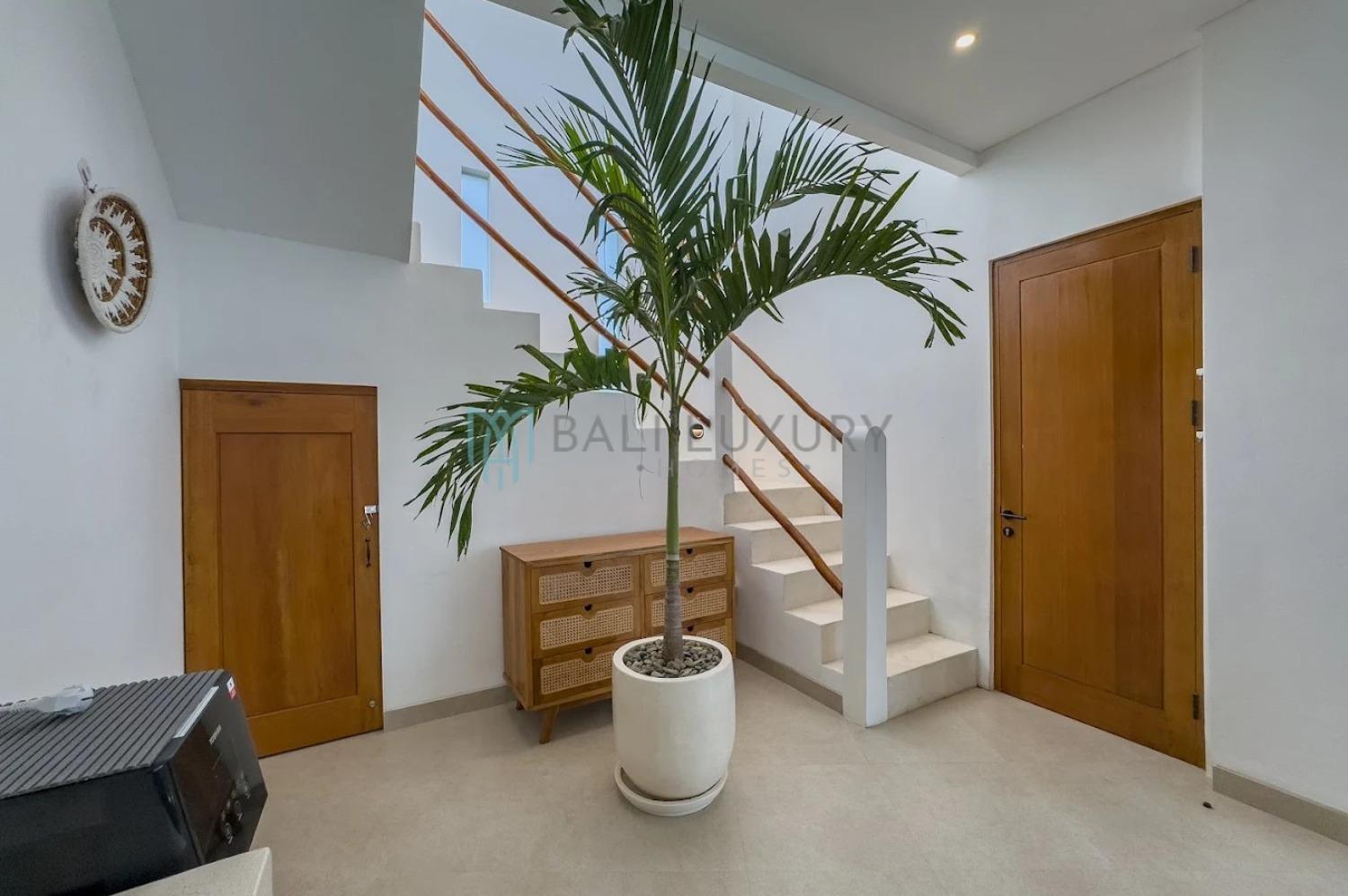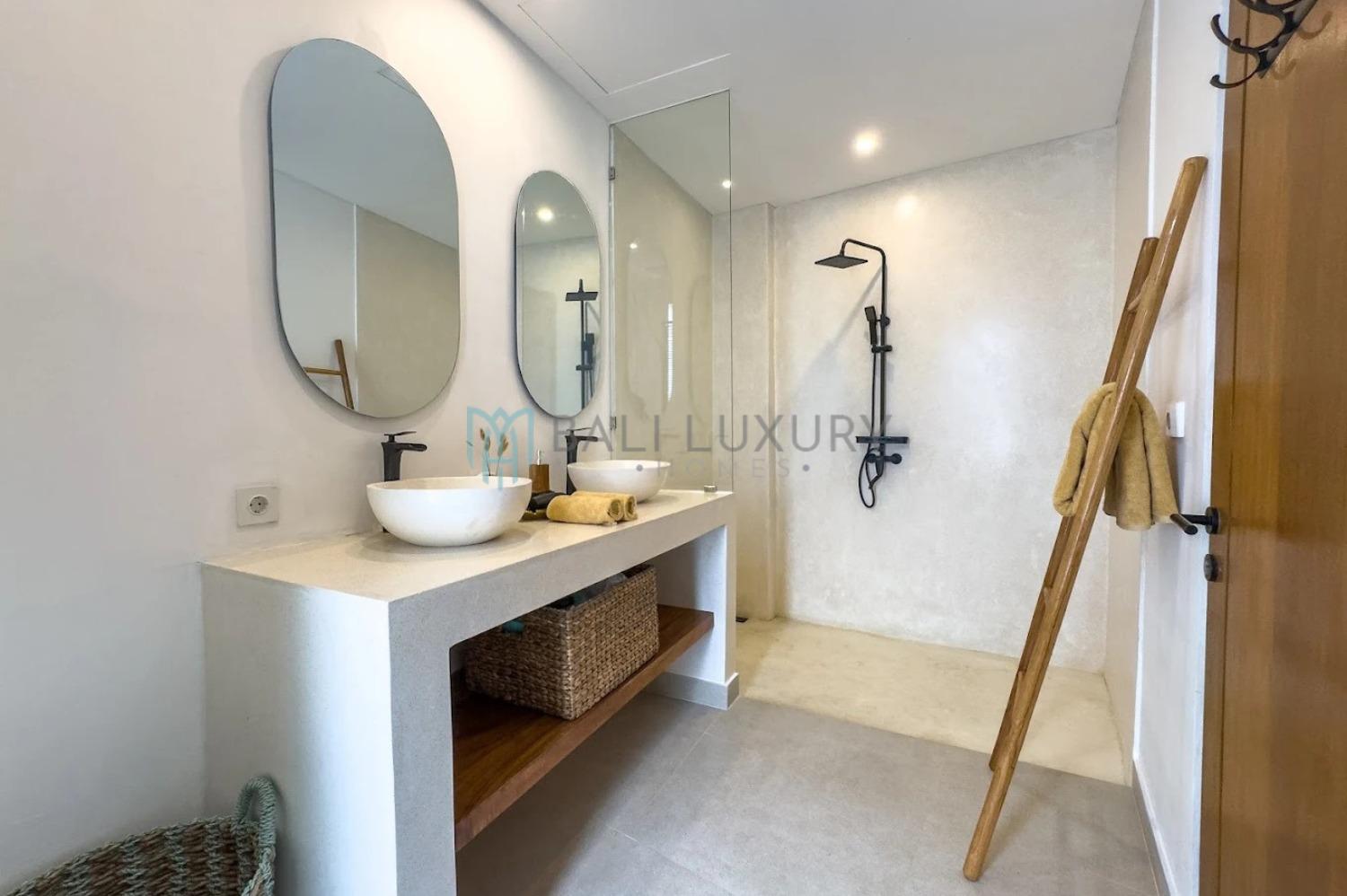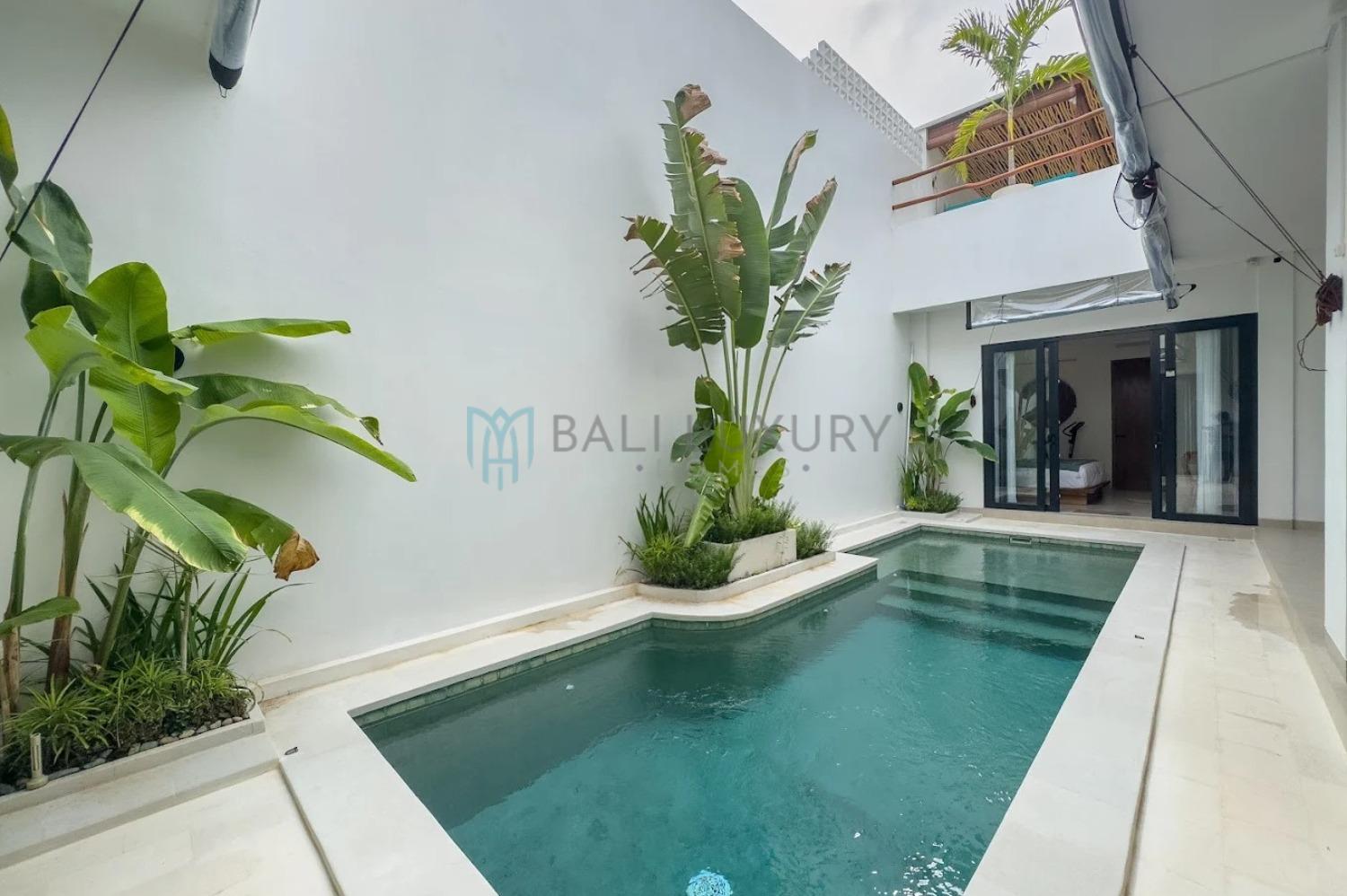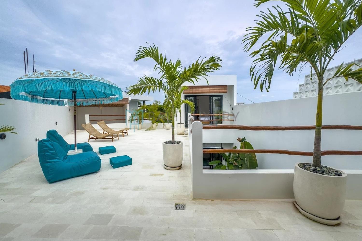 Modern 3-bedroom villa featuring a sleek contemporary design, a private swimming pool, and a spacious rooftop terrace—perfect for relaxing or enjoying sunset views. Conveniently located just a 13-minute drive to Pererenan Beach, 5 minutes to Obsidian Gym Pererenan, and only 15 minutes from the vibrant Canggu area, offering easy access to cafes and restaurants.