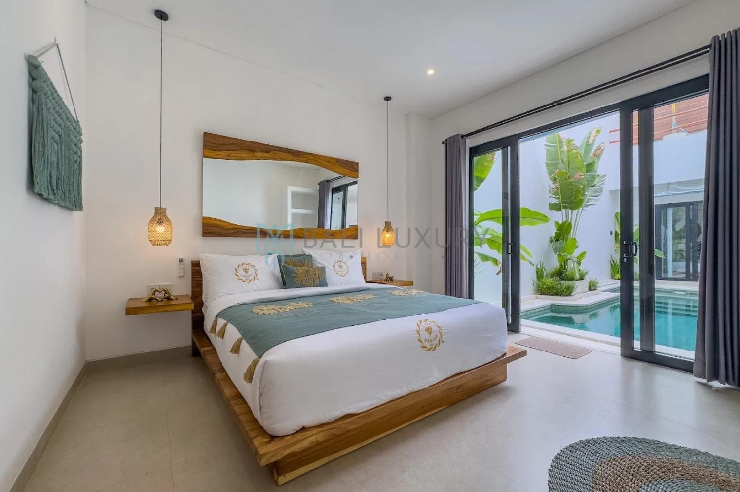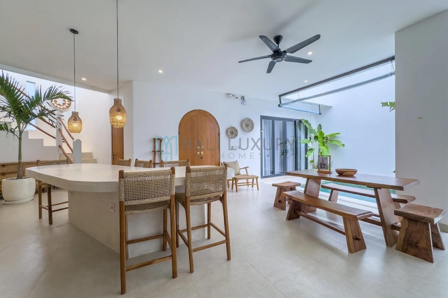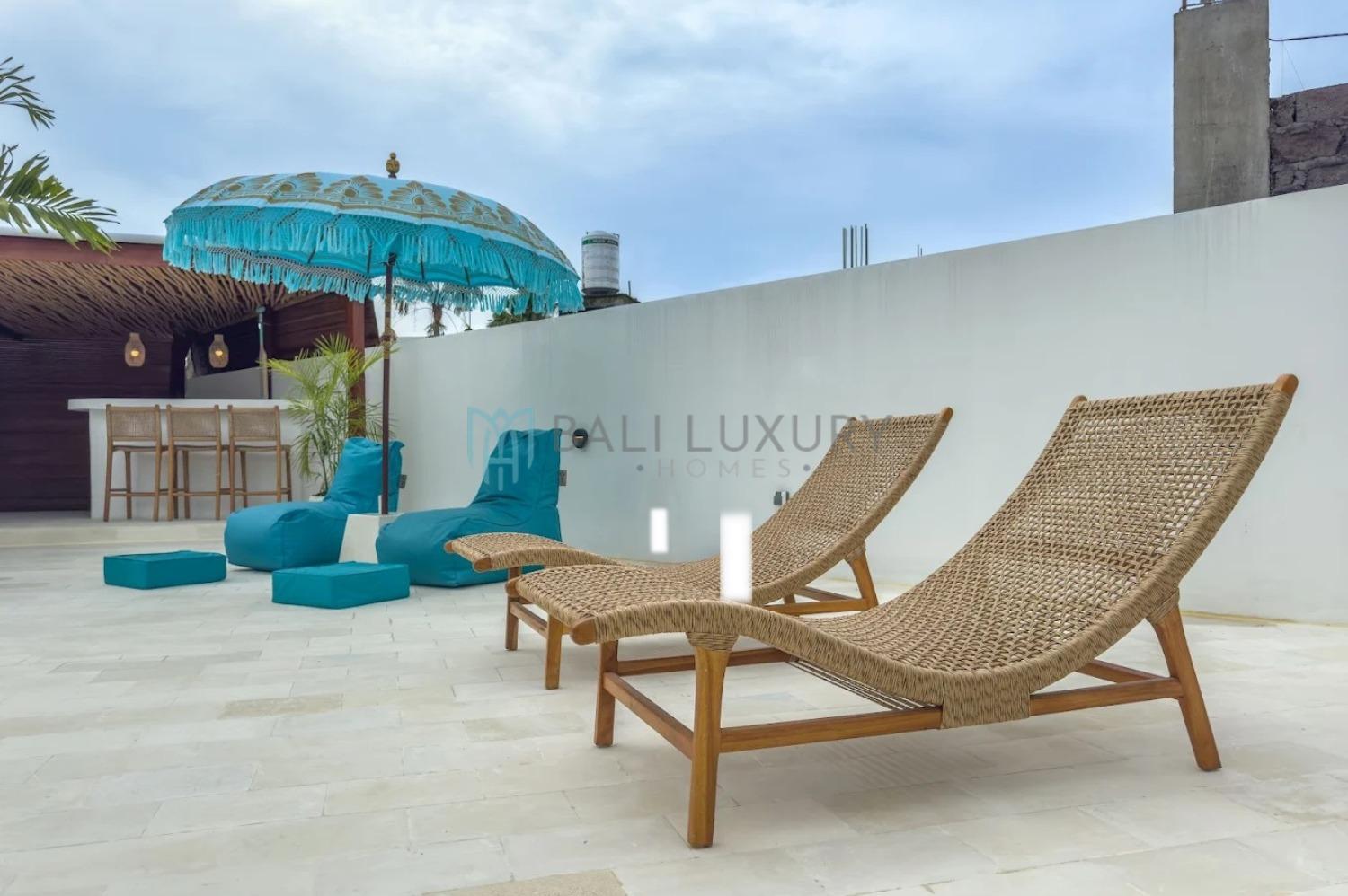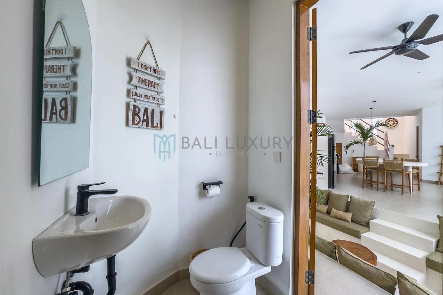 Modern 3-bedroom villa featuring a sleek contemporary design, a private swimming pool, and a spacious rooftop terrace—perfect for relaxing or enjoying sunset views. Conveniently located just a 13-minute drive to Pererenan Beach, 5 minutes to Obsidian Gym Pererenan, and only 15 minutes from the vibrant Canggu area, offering easy access to cafes and restaurants.