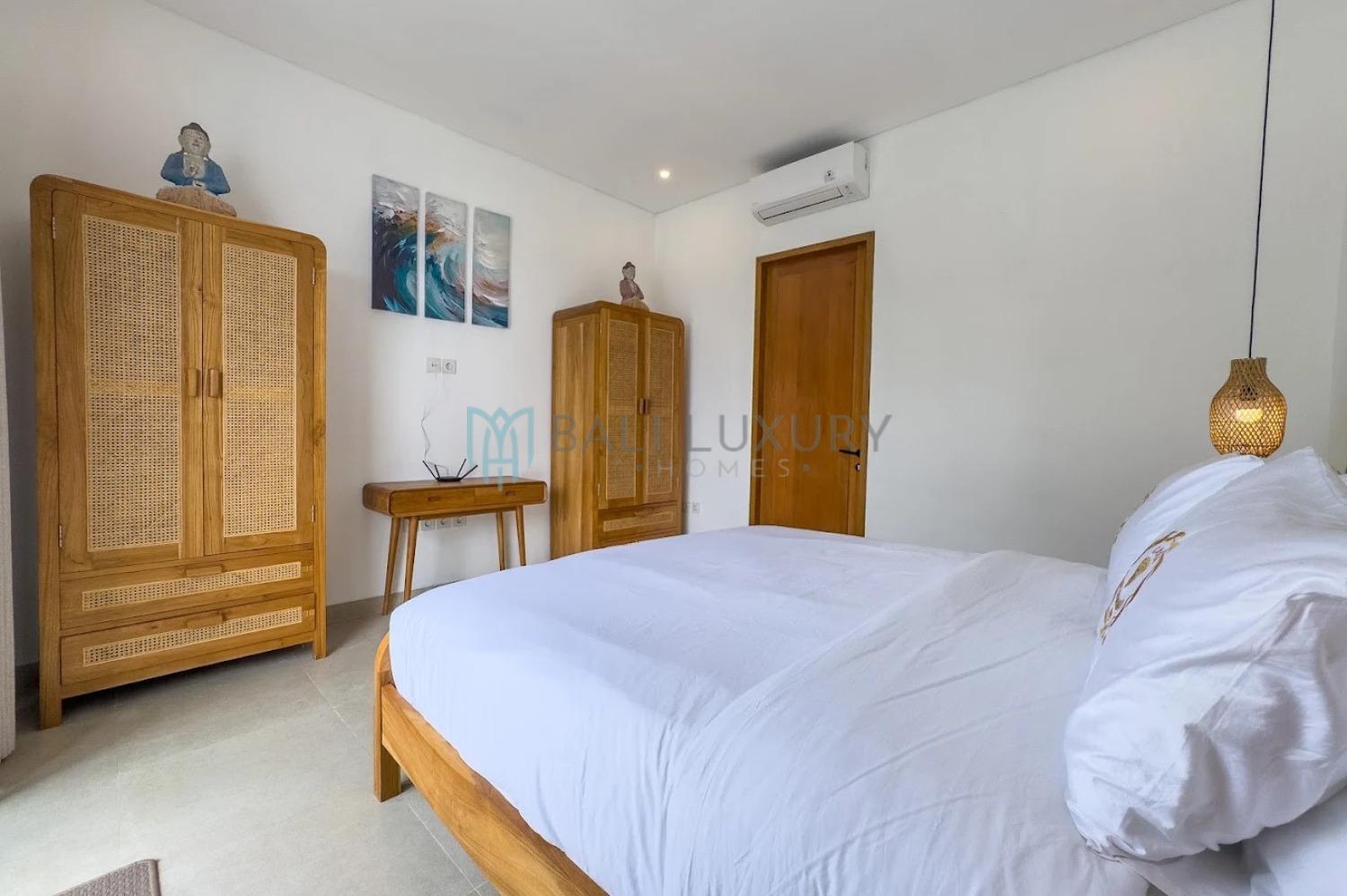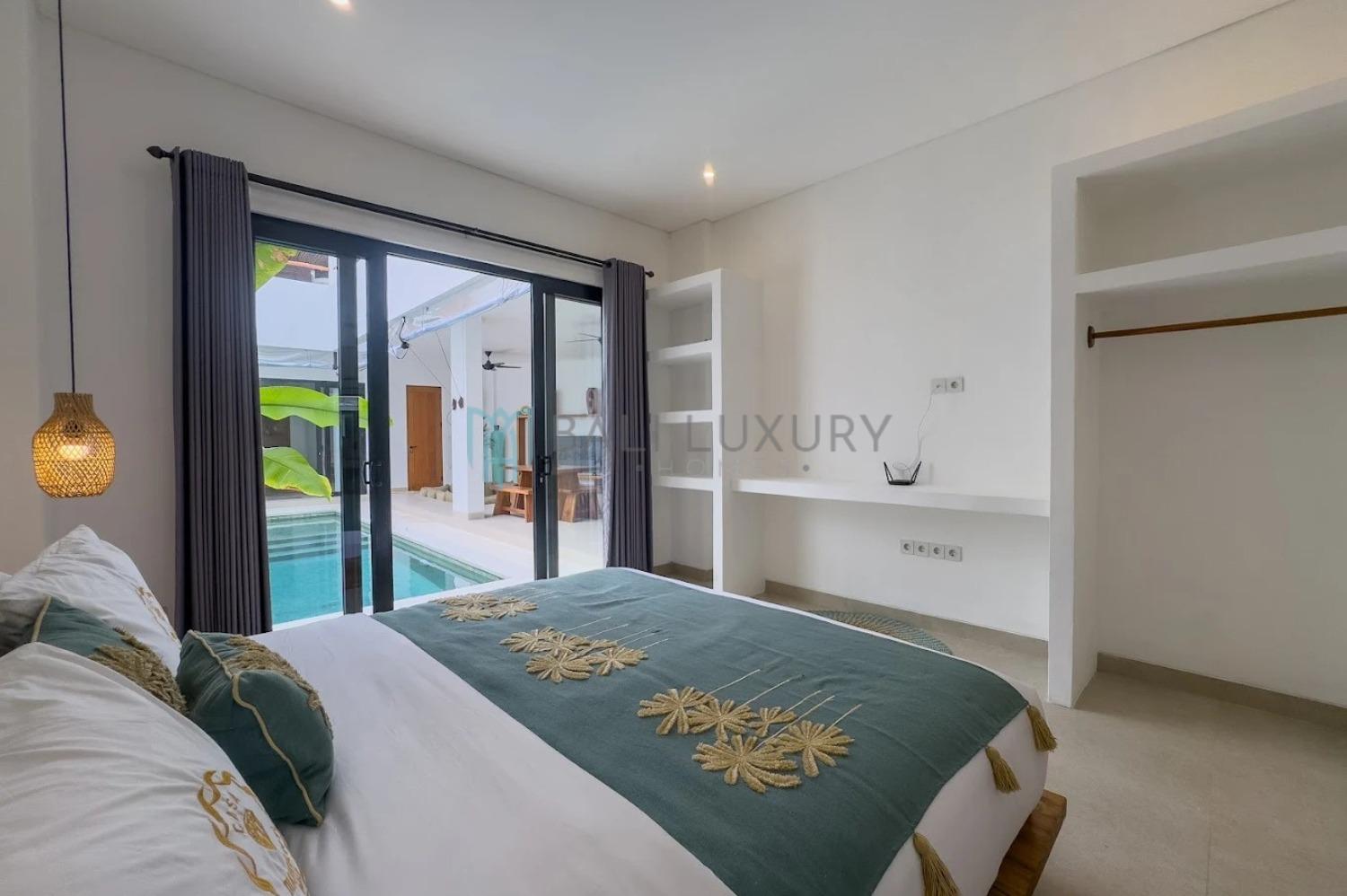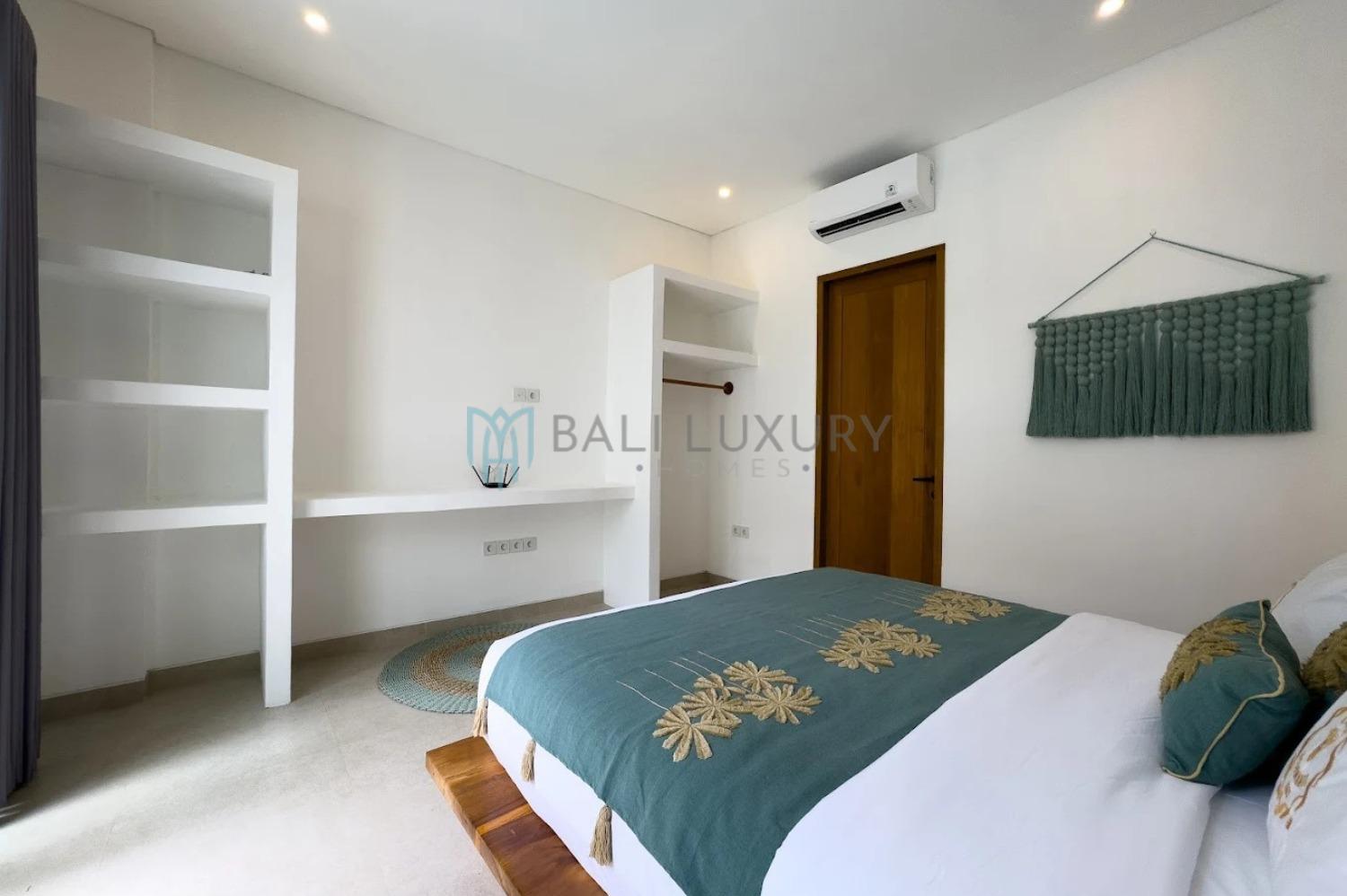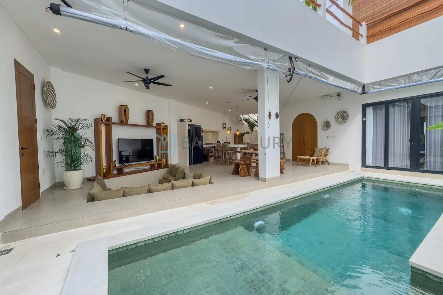 Modern 3-bedroom villa featuring a sleek contemporary design, a private swimming pool, and a spacious rooftop terrace—perfect for relaxing or enjoying sunset views. Conveniently located just a 13-minute drive to Pererenan Beach, 5 minutes to Obsidian Gym Pererenan, and only 15 minutes from the vibrant Canggu area, offering easy access to cafes and restaurants.