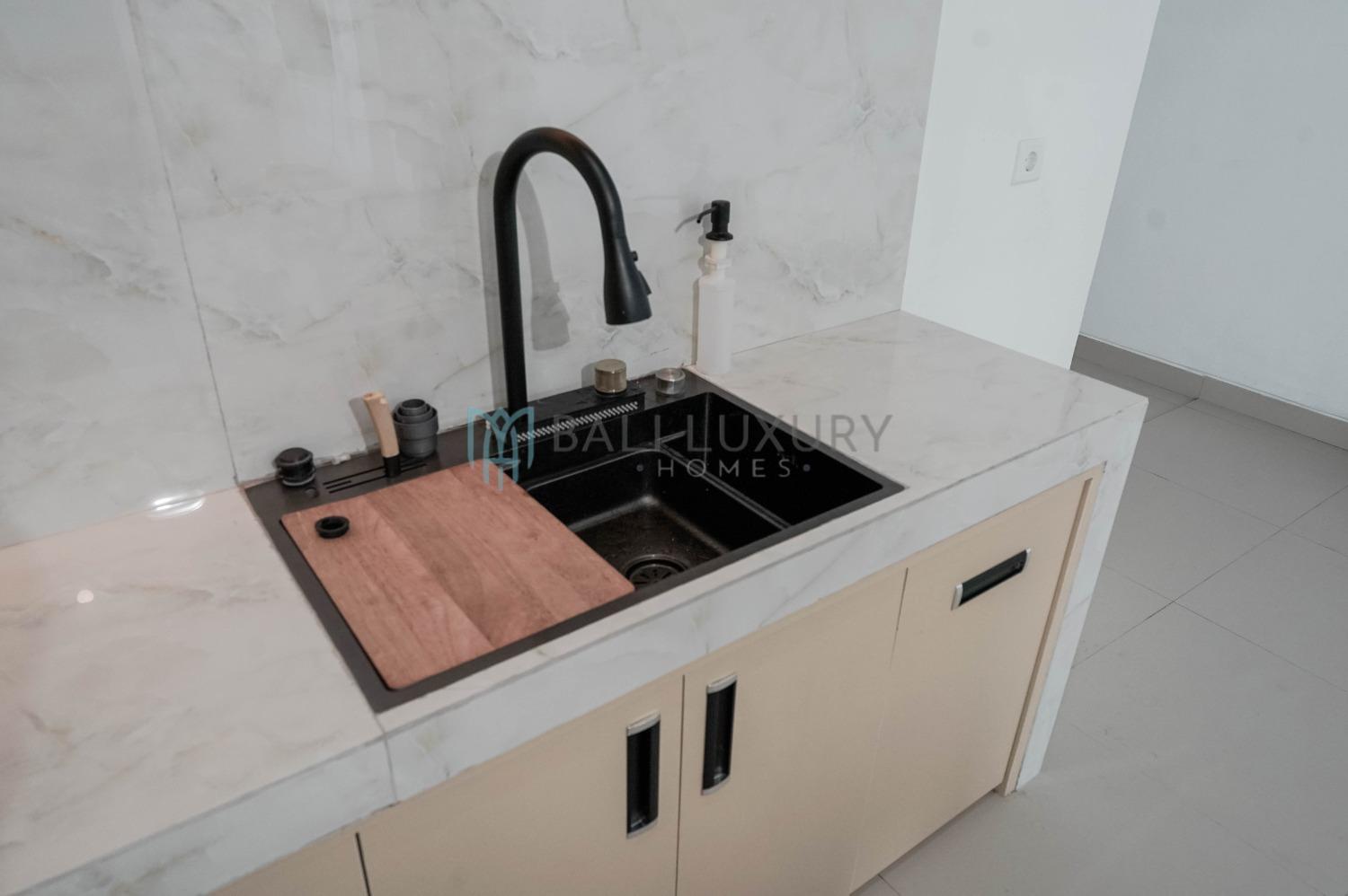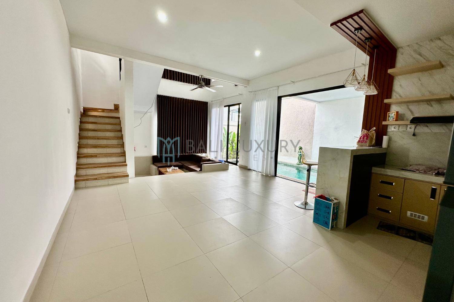 Experience modern minimalist living in this stylish 3-bedroom villa, strategically situated just 10 minutes from Tiara Gatzu supermarket and local laundries, and around 20 minutes from the vibrant Canggu area, perfect for both comfort and accessibility. The villa features an enclosed living room, a small garden, and a private balcony in the bedroom offering a natural view. It also includes car parking space for your convenience.