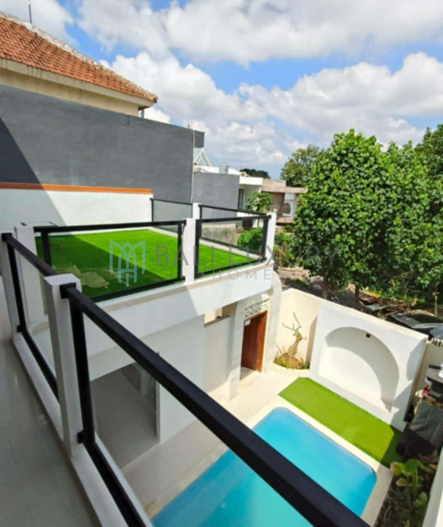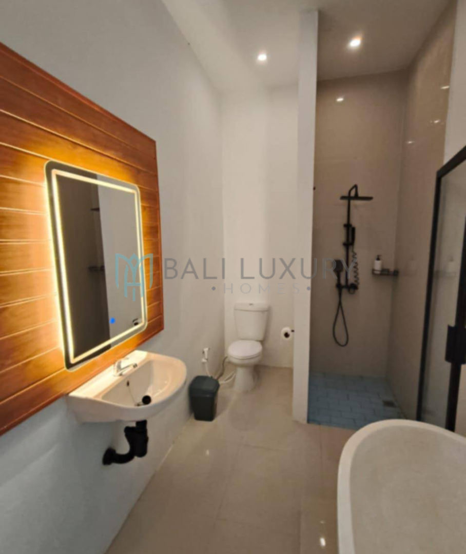 A stylish 2-bedroom villa designed for comfort and privacy, featuring a private pool and a spacious rooftop terrace perfect for relaxing or enjoying views. Ideally located just 8 minutes’ drive to Pepito Market Pererenan and Obsidian Gym Pererenan , and only 15 minutes away from Pererenan Beach . This villa offers the perfect balance of tranquility and convenience for your Bali stay.