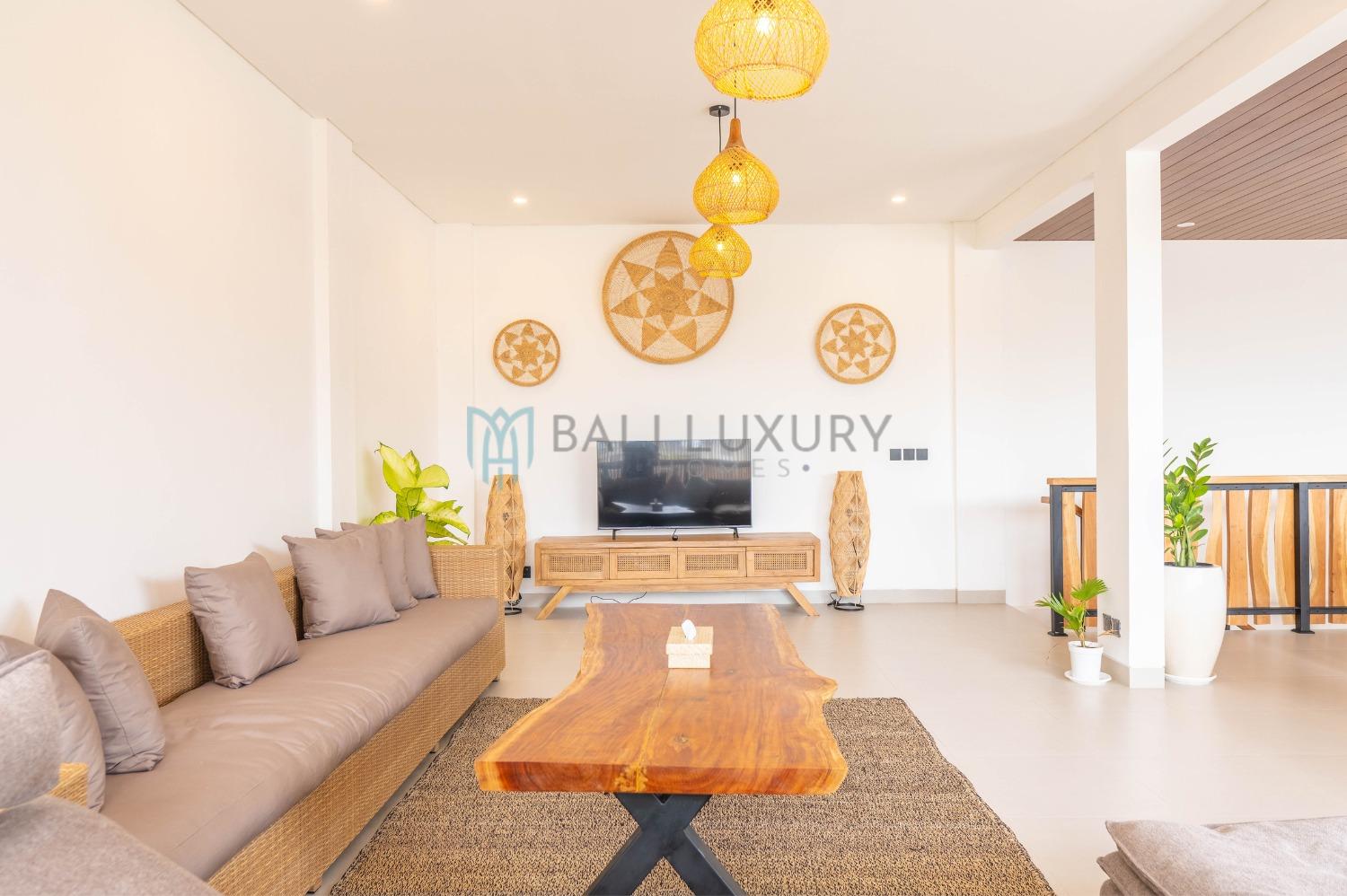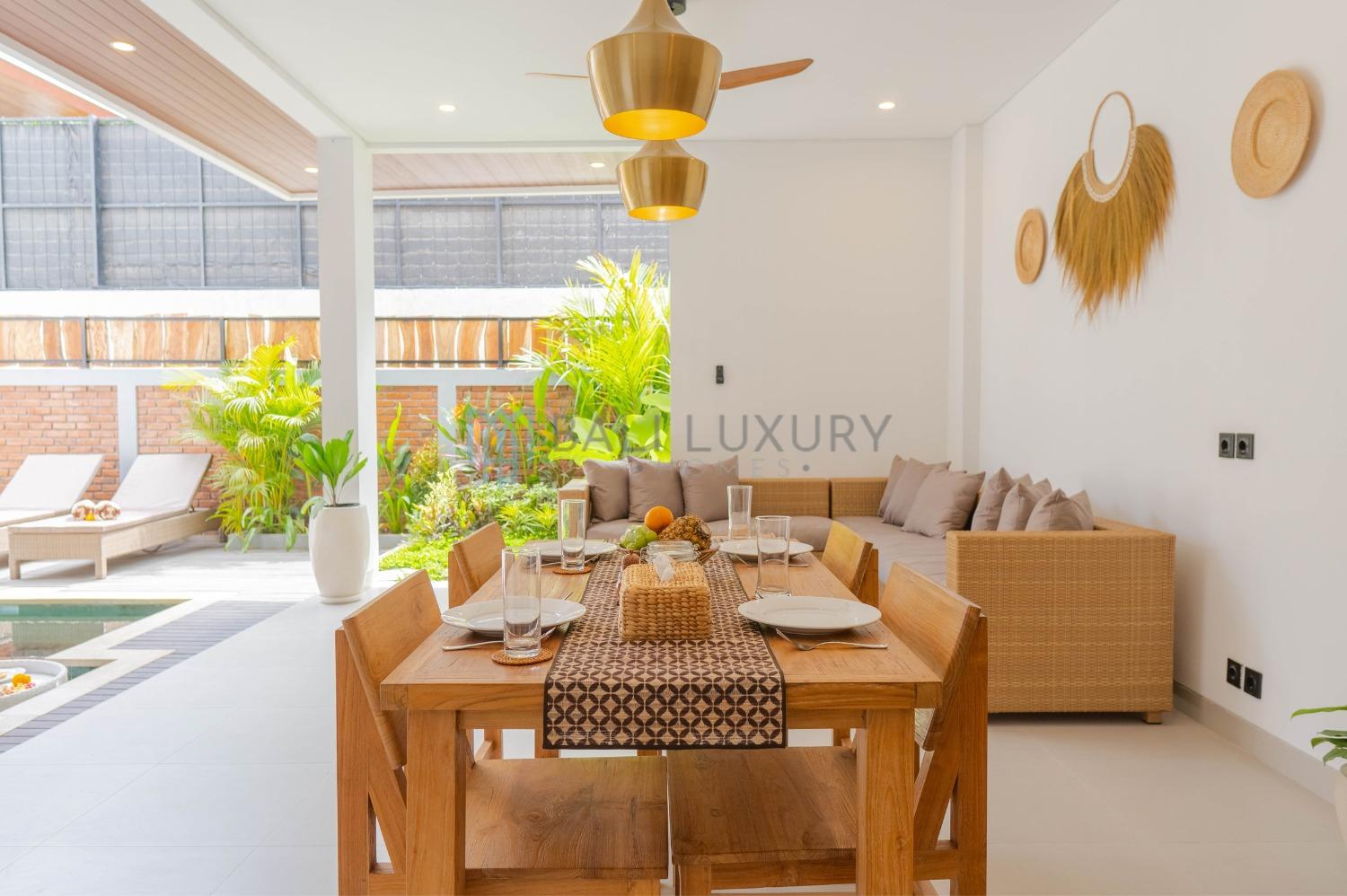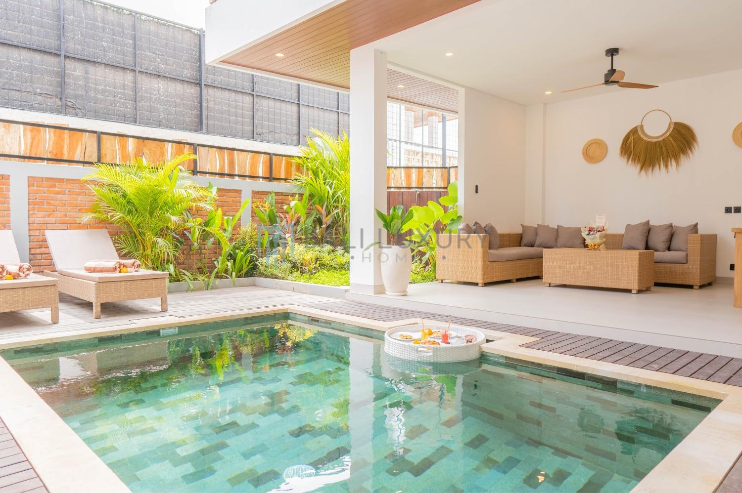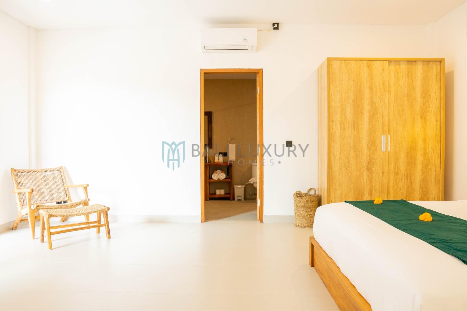 Discover your tropical retreat in Tumbak Bayuh, just 10 minutes drive to Pererenan Beach and 5 minutes away from Obsidian Gym Pererenan. This charming 2-bedroom villa blends modern comfort with Balinese charm, creating the perfect sanctuary for relaxation and remote living. The villa features a bright open dining area on the ground floor, seamlessly connected to a fully equipped kitchen and the private swimming pool surrounded by tropical greenery. Upstairs, you’ll find a cozy living room with a TV, ideal for unwinding after a long day or enjoying movie nights in comfort. Each bedroom is air-conditioned and designed for rest and privacy, complete with ensuite bathrooms and soft natural lighting. The villa’s thoughtful layout offers a smooth indoor-outdoor flow, creating an inviting atmosphere for both leisure and work.