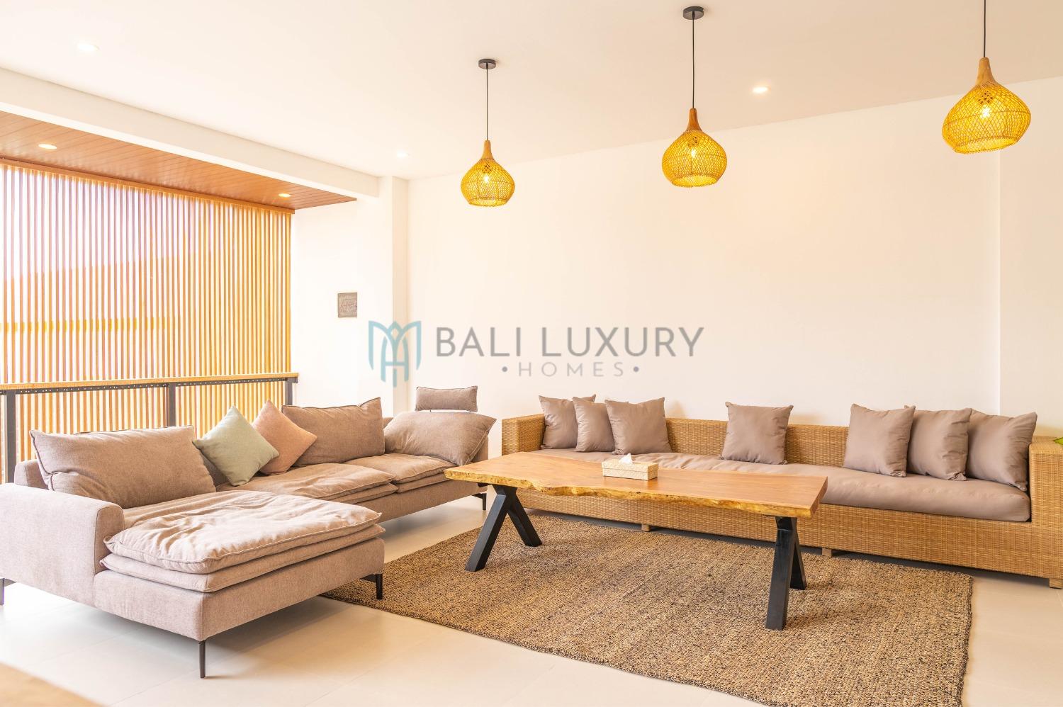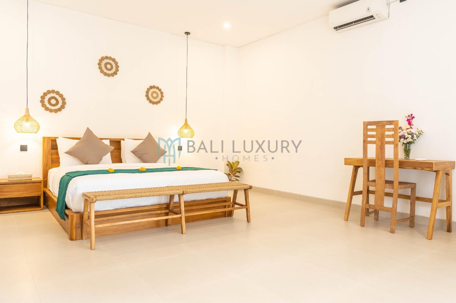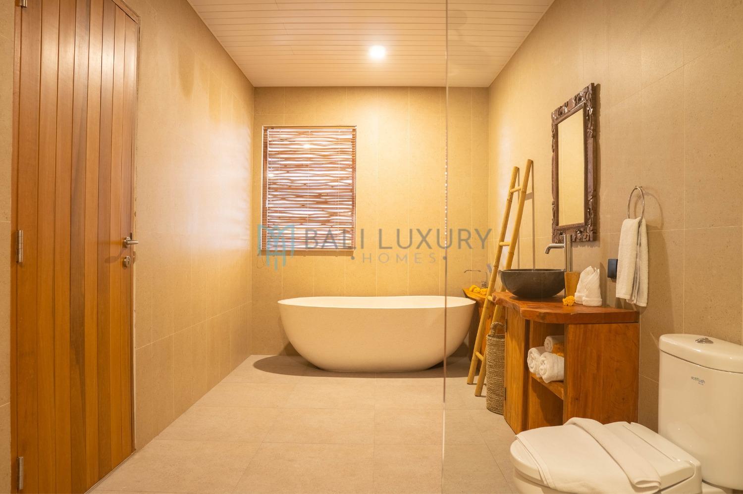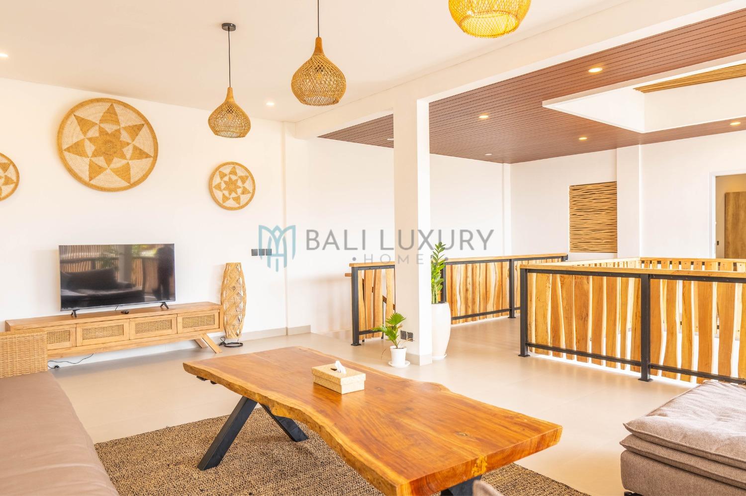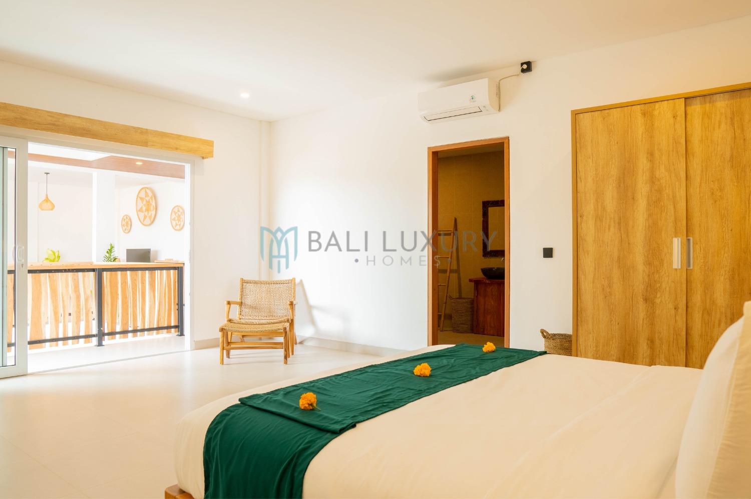 Discover your tropical retreat in Tumbak Bayuh, just 10 minutes drive to Pererenan Beach and 5 minutes away from Obsidian Gym Pererenan. This charming 2-bedroom villa blends modern comfort with Balinese charm, creating the perfect sanctuary for relaxation and remote living. The villa features a bright open dining area on the ground floor, seamlessly connected to a fully equipped kitchen and the private swimming pool surrounded by tropical greenery. Upstairs, you’ll find a cozy living room with a TV, ideal for unwinding after a long day or enjoying movie nights in comfort. Each bedroom is air-conditioned and designed for rest and privacy, complete with ensuite bathrooms and soft natural lighting. The villa’s thoughtful layout offers a smooth indoor-outdoor flow, creating an inviting atmosphere for both leisure and work.
