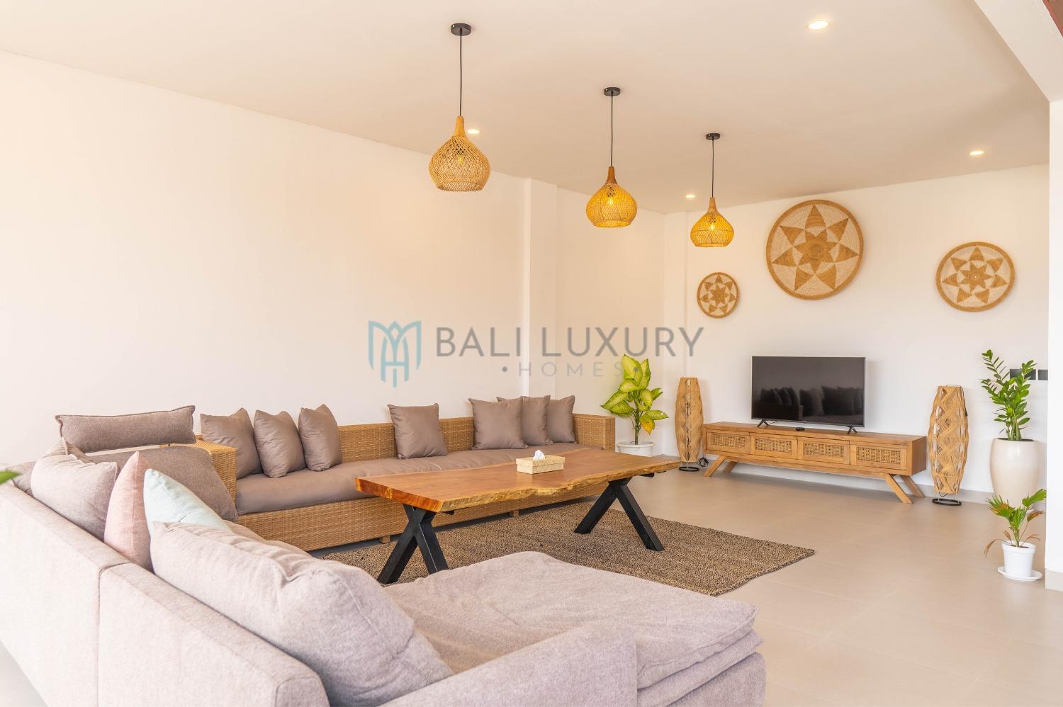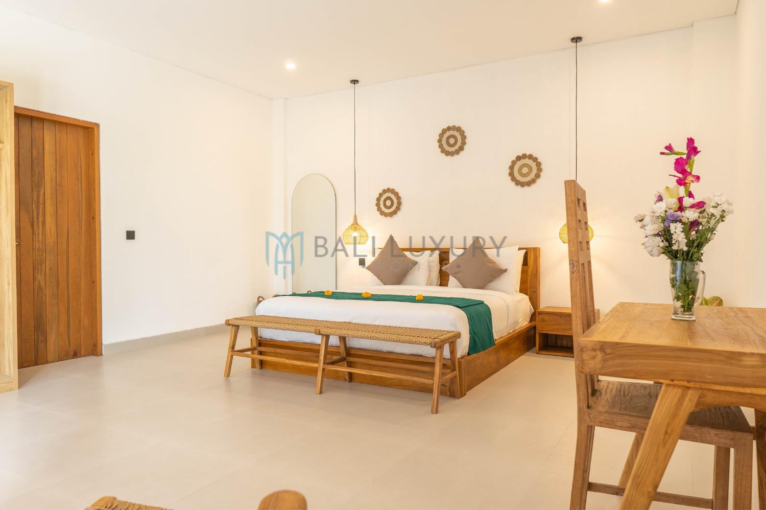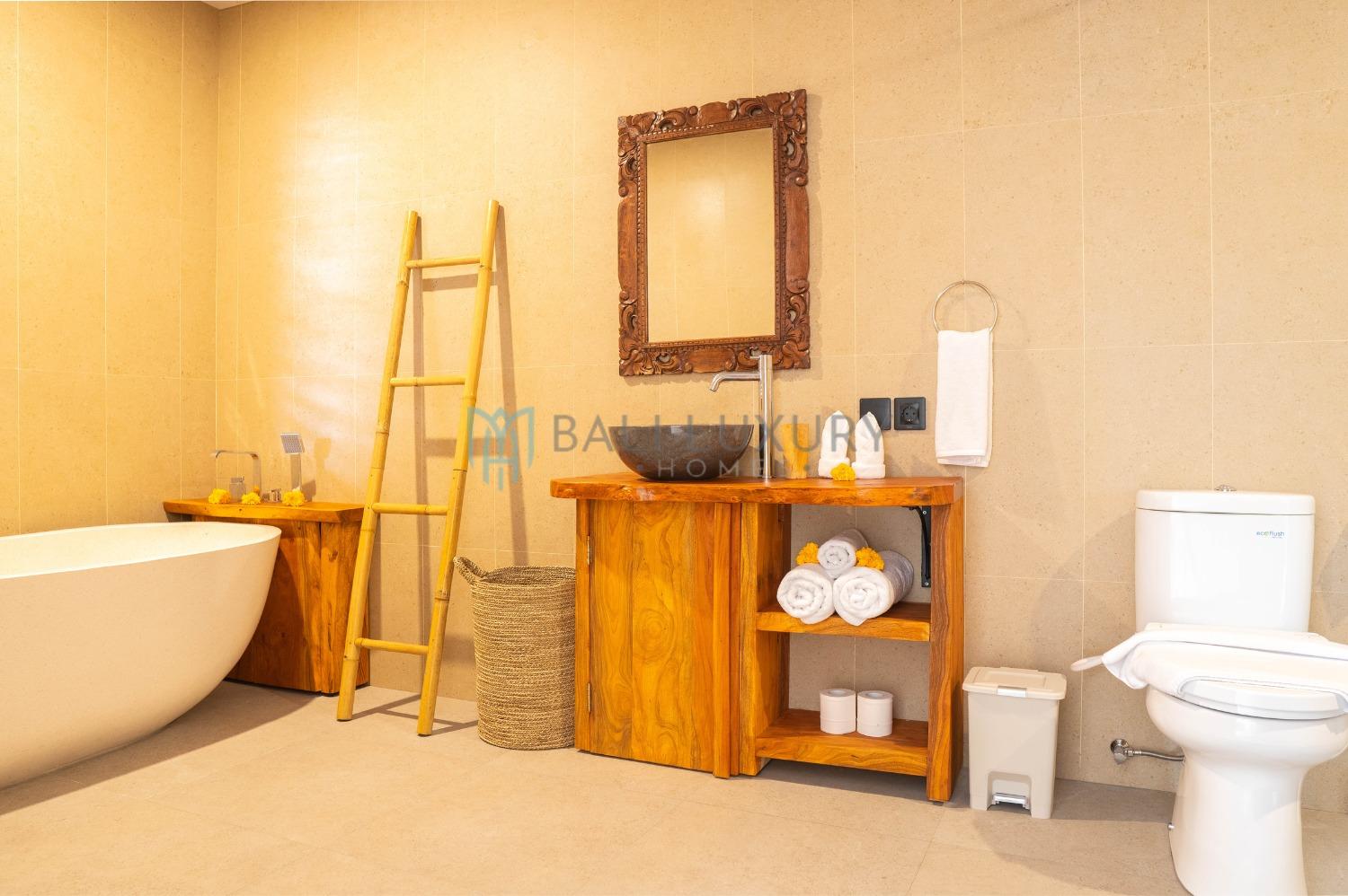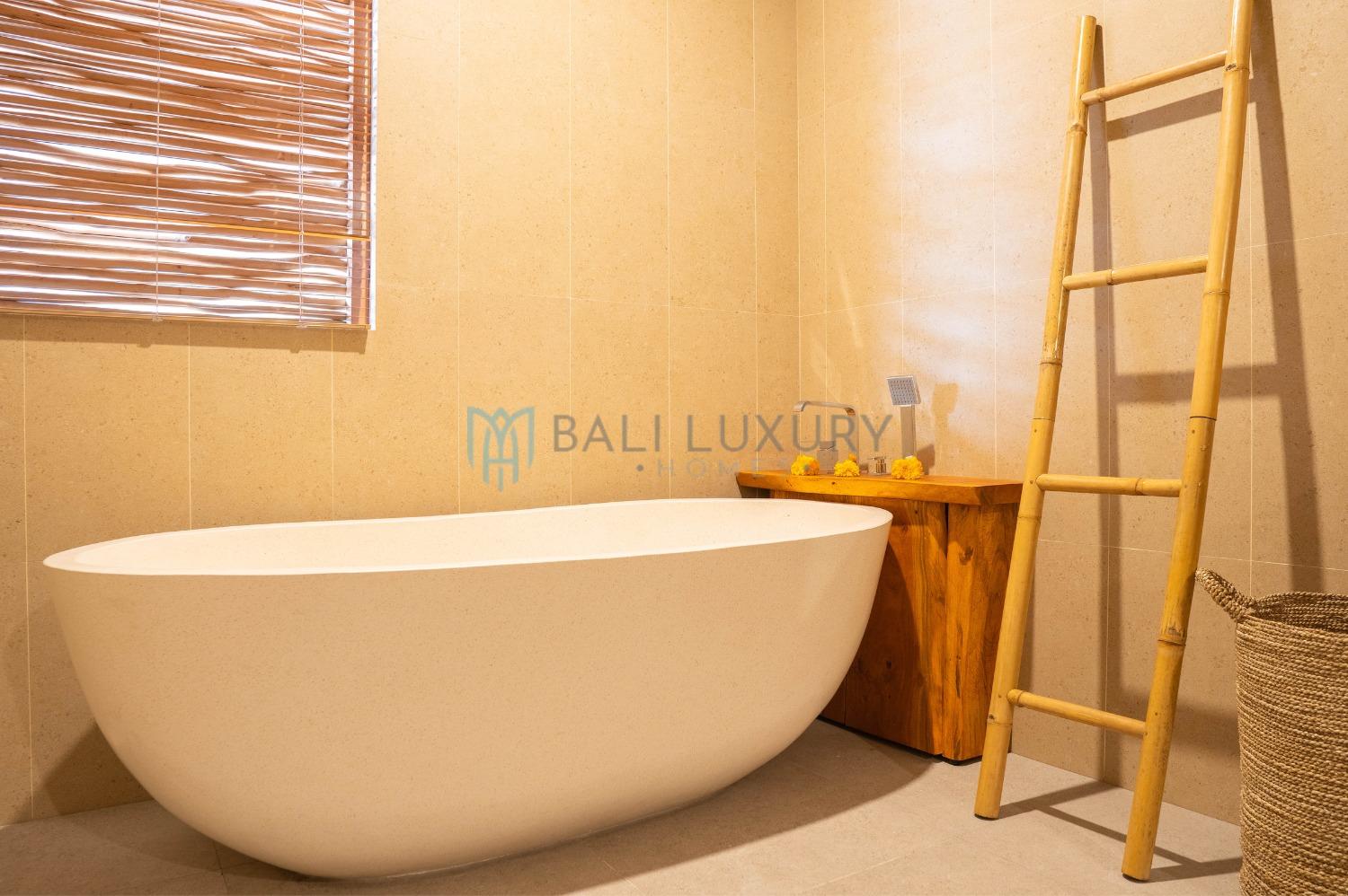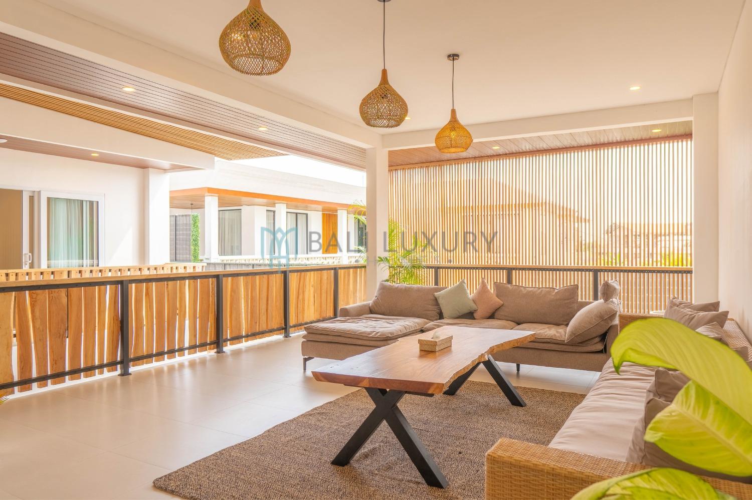 Discover your tropical retreat in Tumbak Bayuh, just 10 minutes drive to Pererenan Beach and 5 minutes away from Obsidian Gym Pererenan. This charming 2-bedroom villa blends modern comfort with Balinese charm, creating the perfect sanctuary for relaxation and remote living. The villa features a bright open dining area on the ground floor, seamlessly connected to a fully equipped kitchen and the private swimming pool surrounded by tropical greenery. Upstairs, you’ll find a cozy living room with a TV, ideal for unwinding after a long day or enjoying movie nights in comfort. Each bedroom is air-conditioned and designed for rest and privacy, complete with ensuite bathrooms and soft natural lighting. The villa’s thoughtful layout offers a smooth indoor-outdoor flow, creating an inviting atmosphere for both leisure and work.