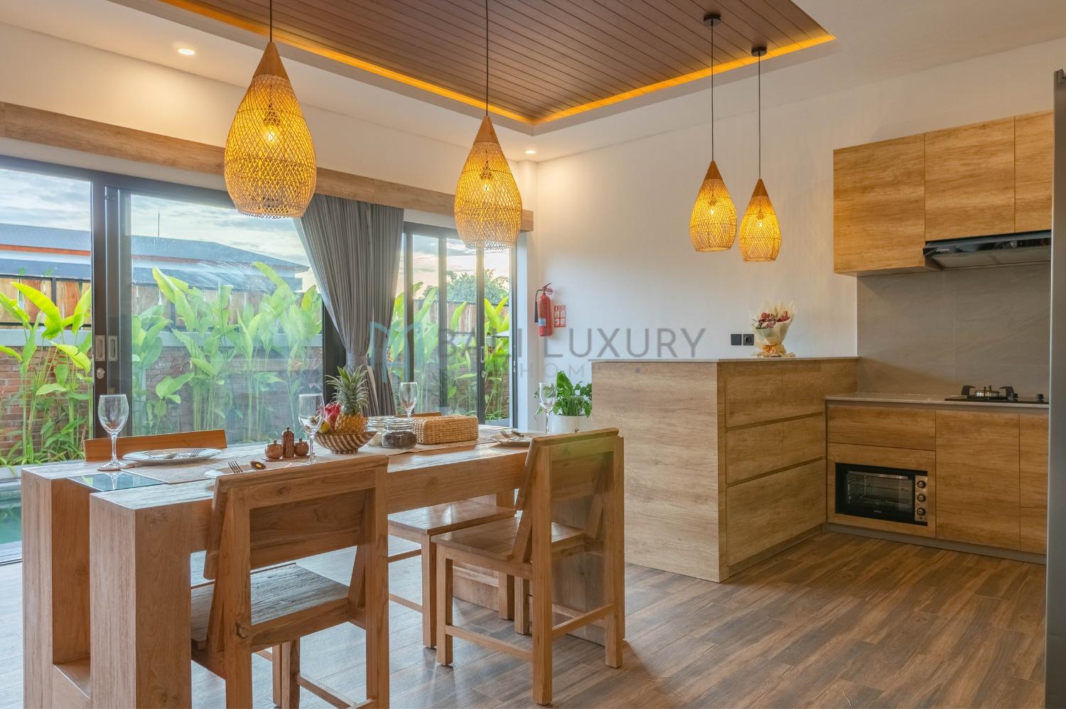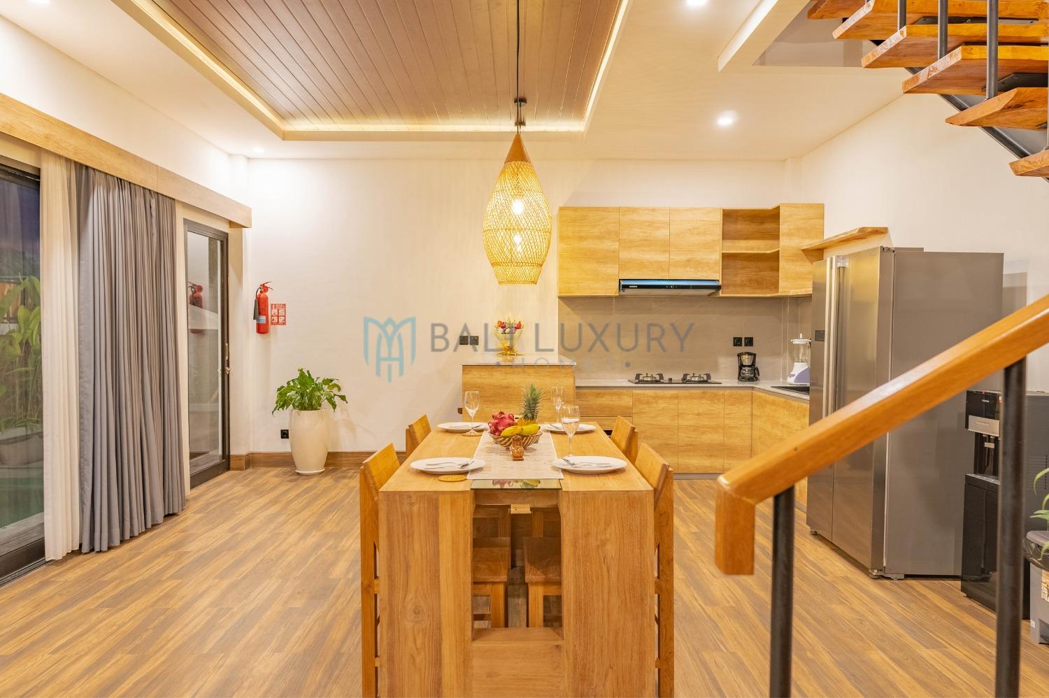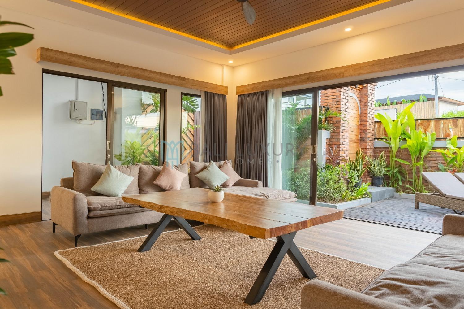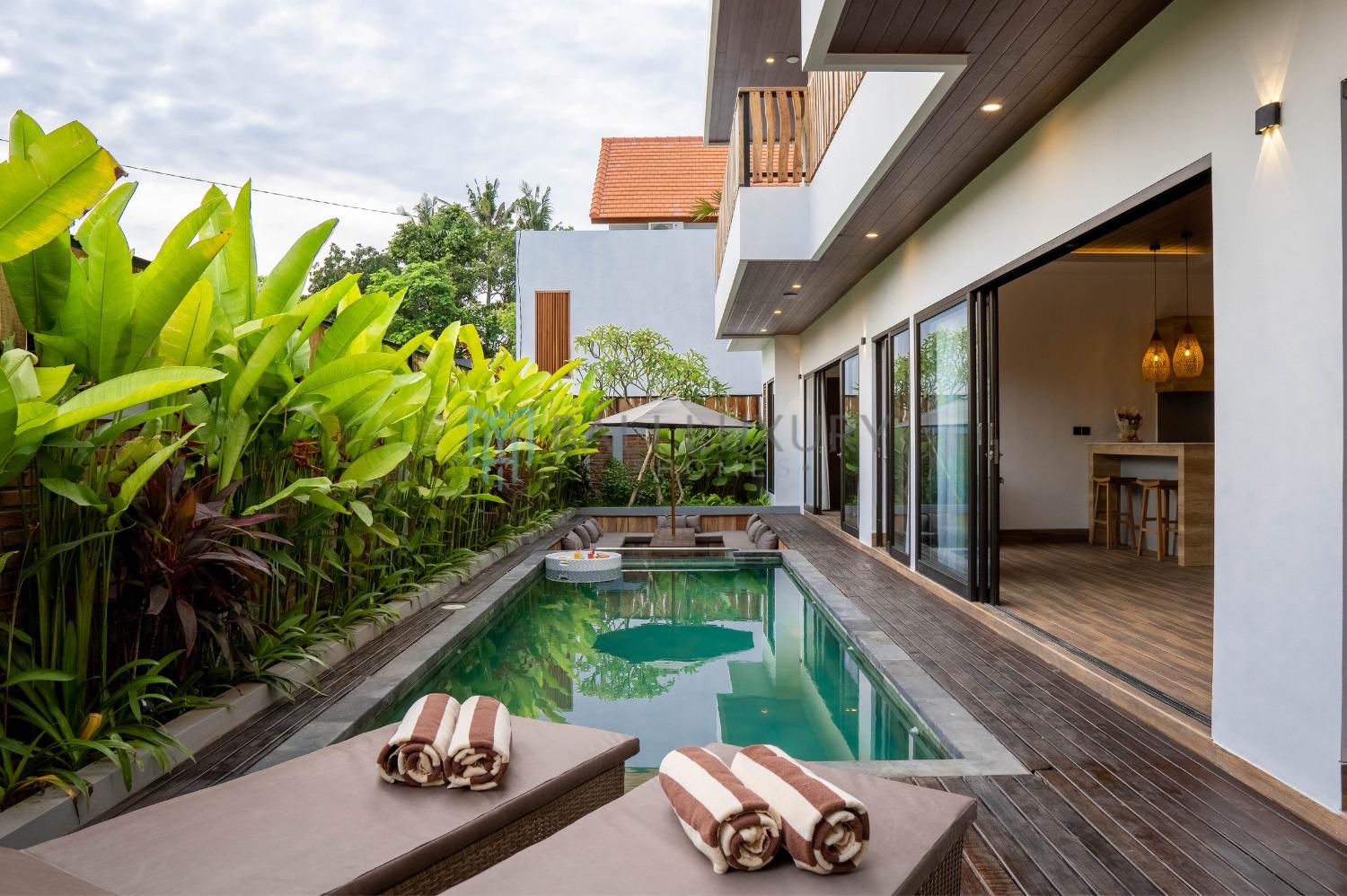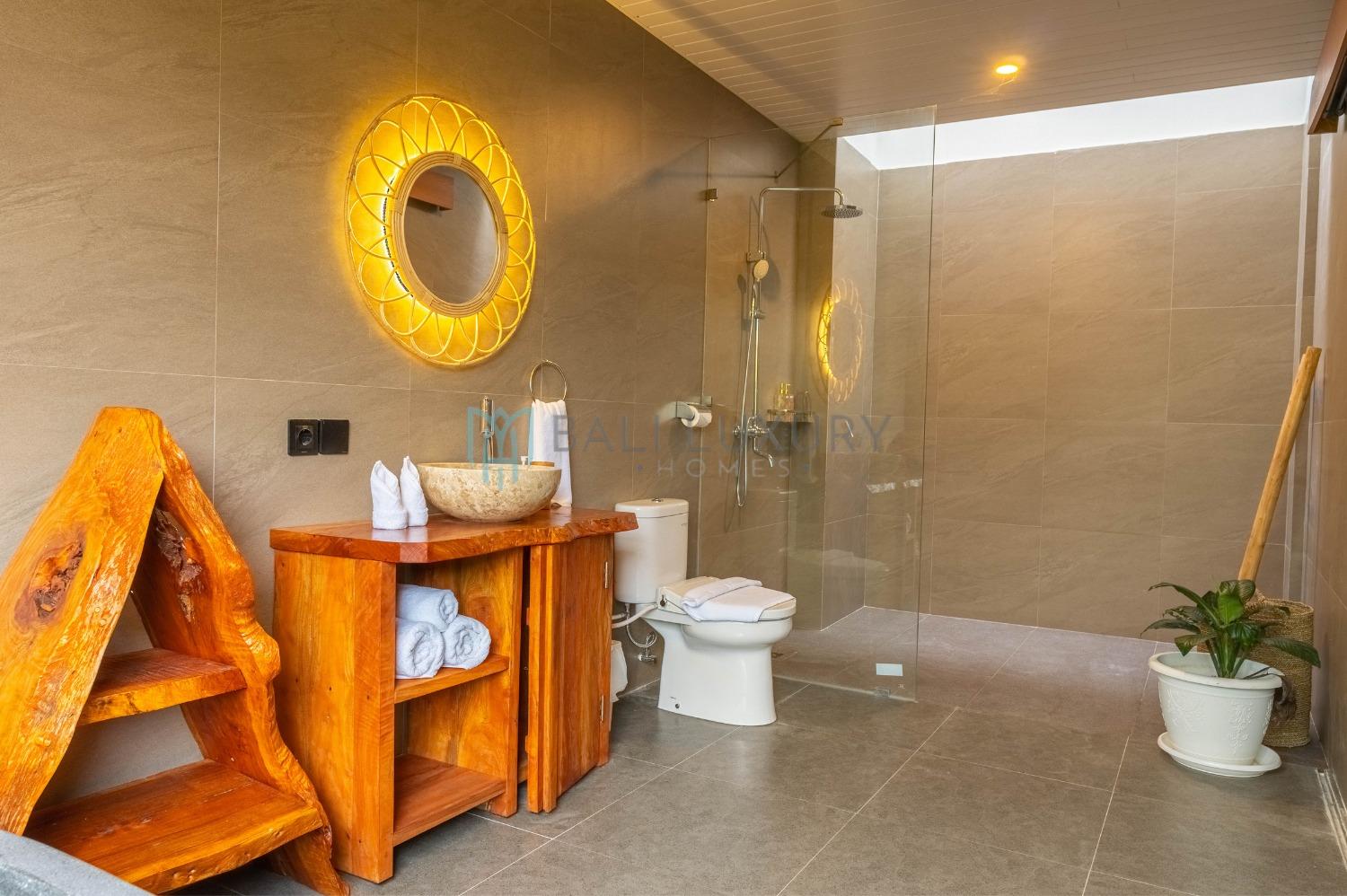 Discover your tropical retreat in Tumbak Bayuh, just 10 minutes drive to Pererenan Beach and 5 minutes away from Obsidian Gym Pererenan. This charming 2-bedroom villa blends modern comfort with Balinese charm, creating the perfect sanctuary for relaxation and remote living. The villa features a bright open dining area on the ground floor, seamlessly connected to a fully equipped kitchen and the private swimming pool surrounded by tropical greenery. Upstairs, you’ll find a cozy living room with a TV, ideal for unwinding after a long day or enjoying movie nights in comfort. Each bedroom is air-conditioned and designed for rest and privacy, complete with ensuite bathrooms and soft natural lighting. The villa’s thoughtful layout offers a smooth indoor-outdoor flow, creating an inviting atmosphere for both leisure and work.