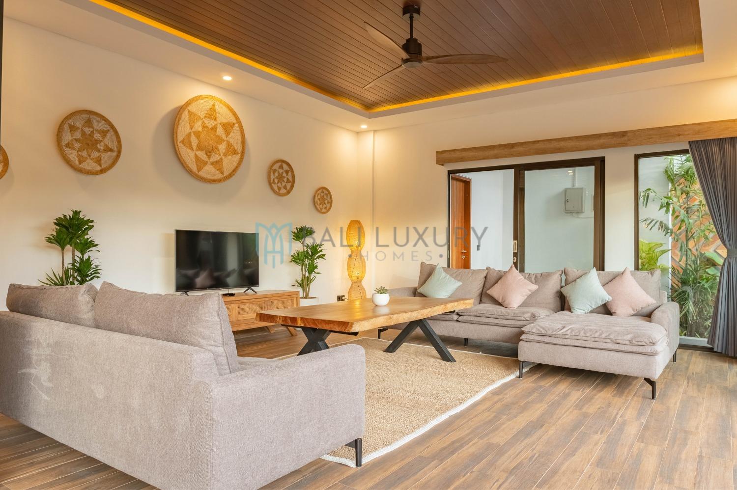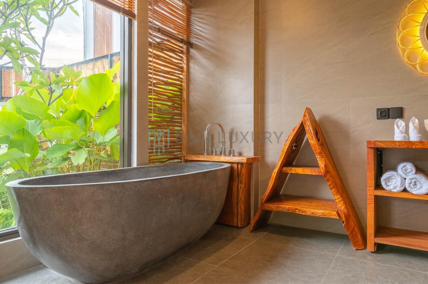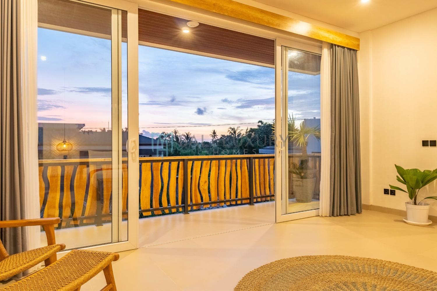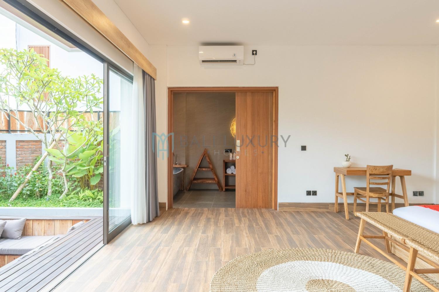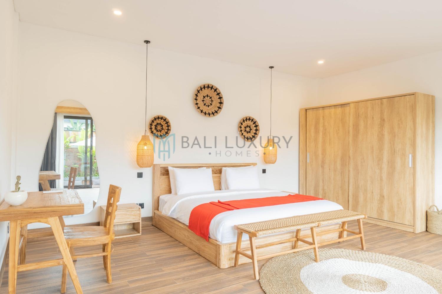 Discover your tropical retreat in Tumbak Bayuh, just 10 minutes drive to Pererenan Beach and 5 minutes away from Obsidian Gym Pererenan. This charming 2-bedroom villa blends modern comfort with Balinese charm, creating the perfect sanctuary for relaxation and remote living. The villa features a bright open dining area on the ground floor, seamlessly connected to a fully equipped kitchen and the private swimming pool surrounded by tropical greenery. Upstairs, you’ll find a cozy living room with a TV, ideal for unwinding after a long day or enjoying movie nights in comfort. Each bedroom is air-conditioned and designed for rest and privacy, complete with ensuite bathrooms and soft natural lighting. The villa’s thoughtful layout offers a smooth indoor-outdoor flow, creating an inviting atmosphere for both leisure and work.