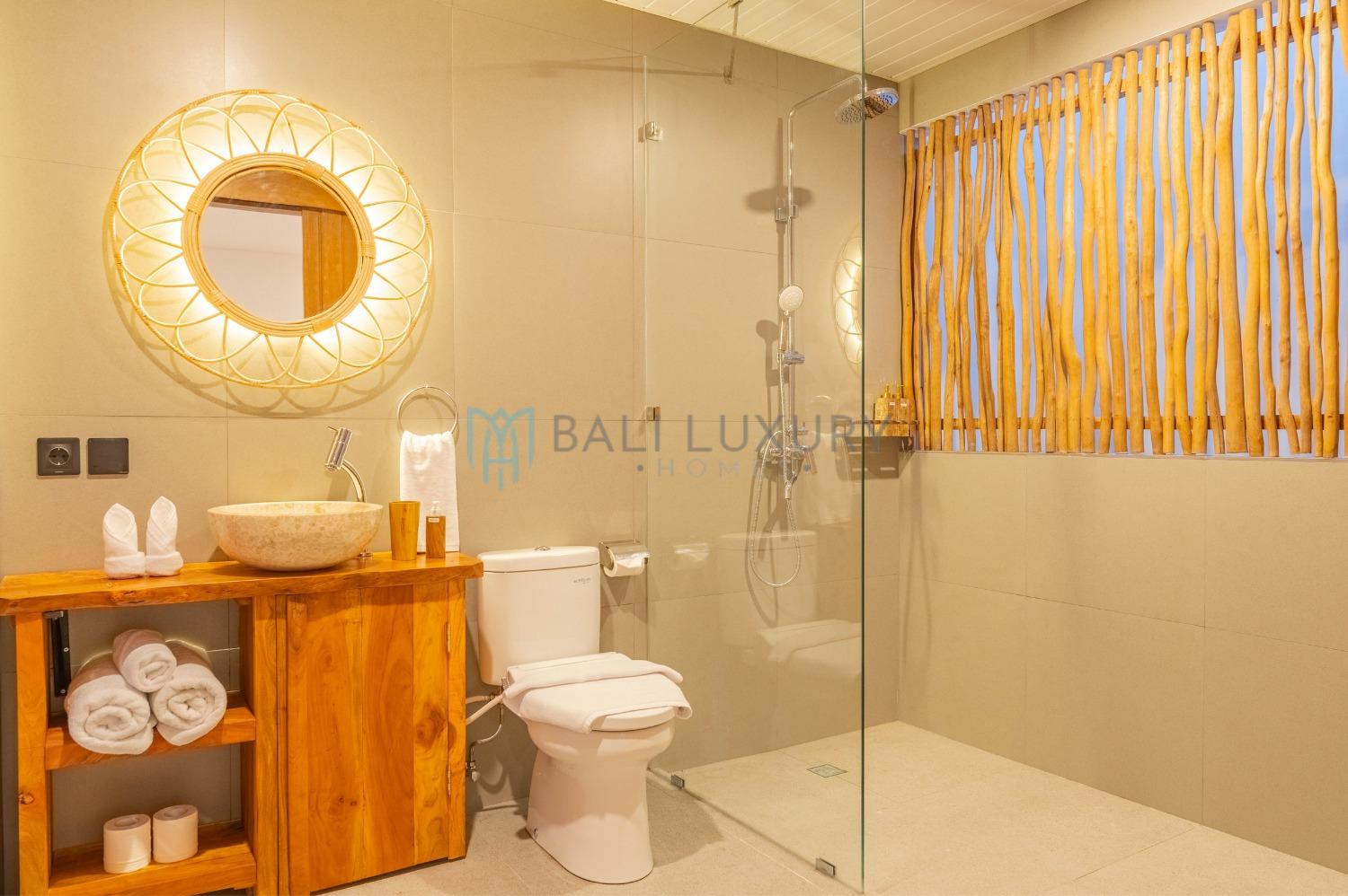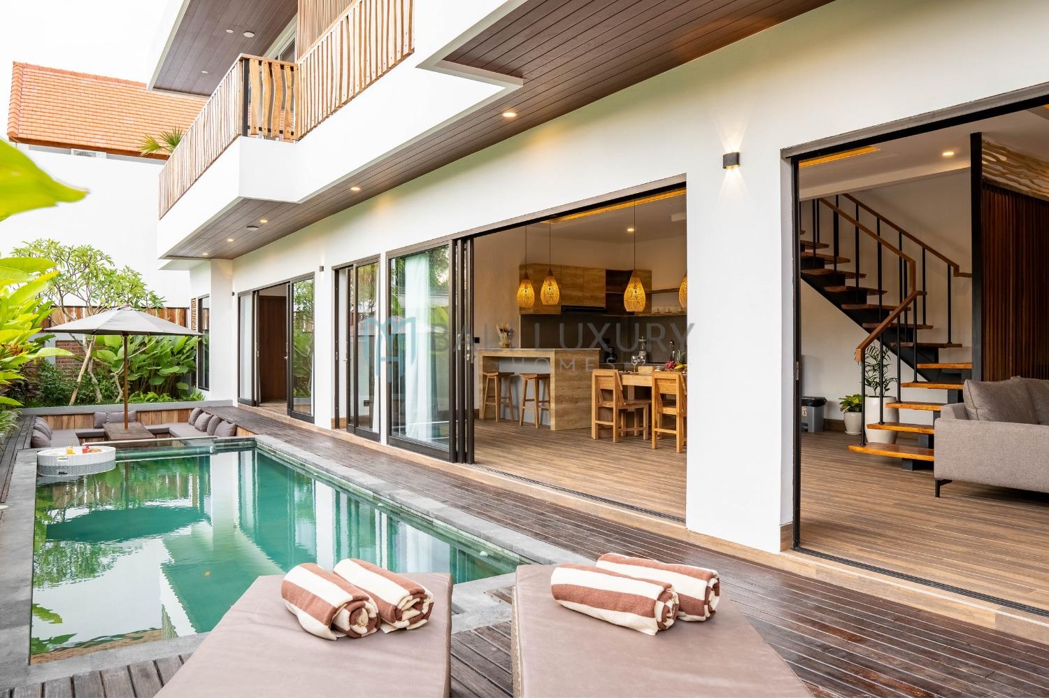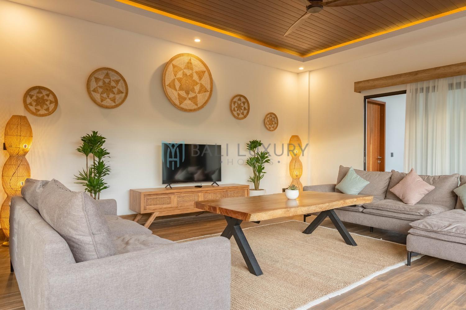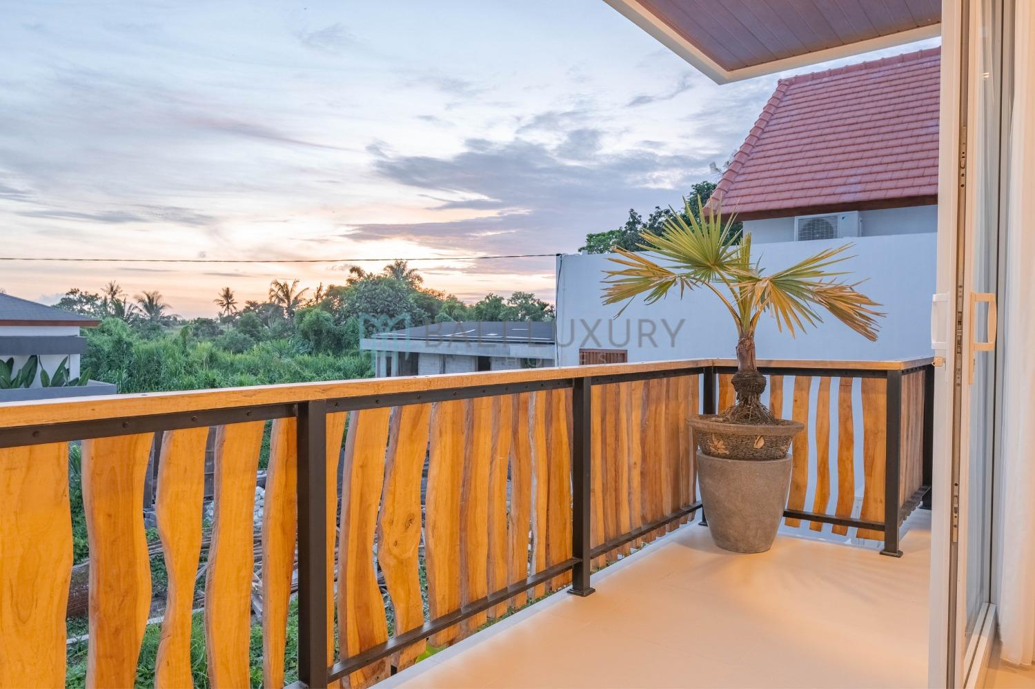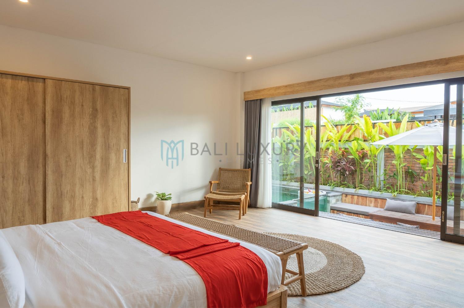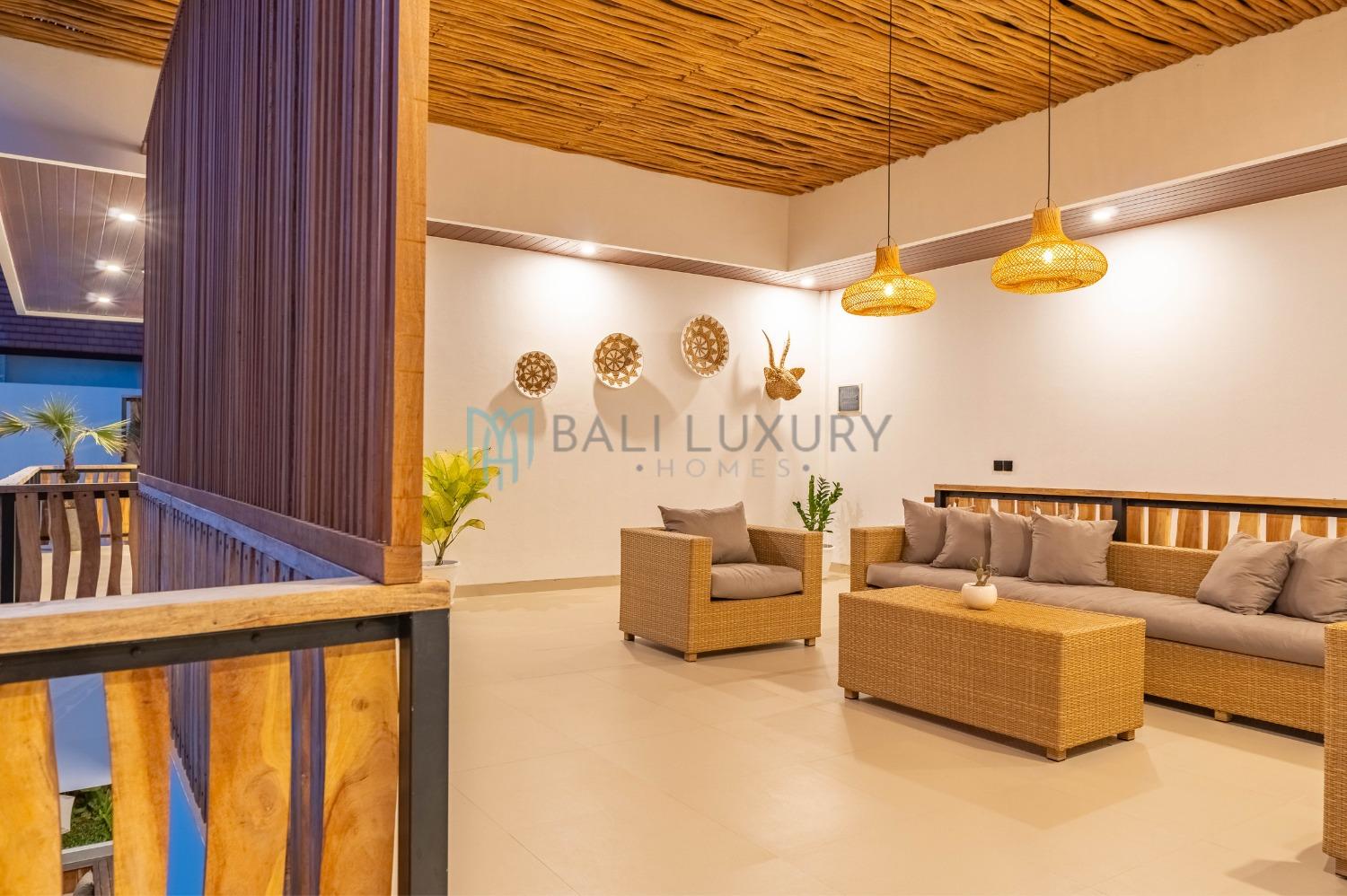 Discover your tropical retreat in Tumbak Bayuh, just 10 minutes drive to Pererenan Beach and 5 minutes away from Obsidian Gym Pererenan. This charming 2-bedroom villa blends modern comfort with Balinese charm, creating the perfect sanctuary for relaxation and remote living. The villa features a bright open dining area on the ground floor, seamlessly connected to a fully equipped kitchen and the private swimming pool surrounded by tropical greenery. Upstairs, you’ll find a cozy living room with a TV, ideal for unwinding after a long day or enjoying movie nights in comfort. Each bedroom is air-conditioned and designed for rest and privacy, complete with ensuite bathrooms and soft natural lighting. The villa’s thoughtful layout offers a smooth indoor-outdoor flow, creating an inviting atmosphere for both leisure and work.