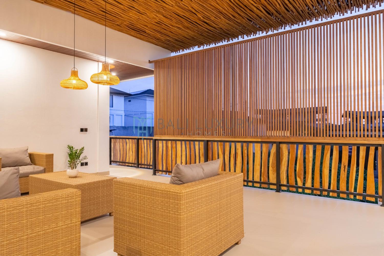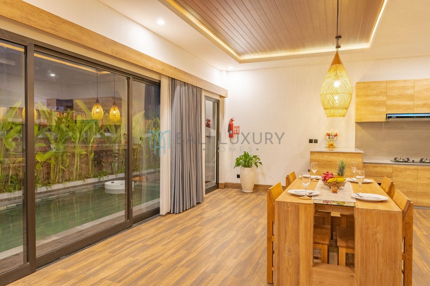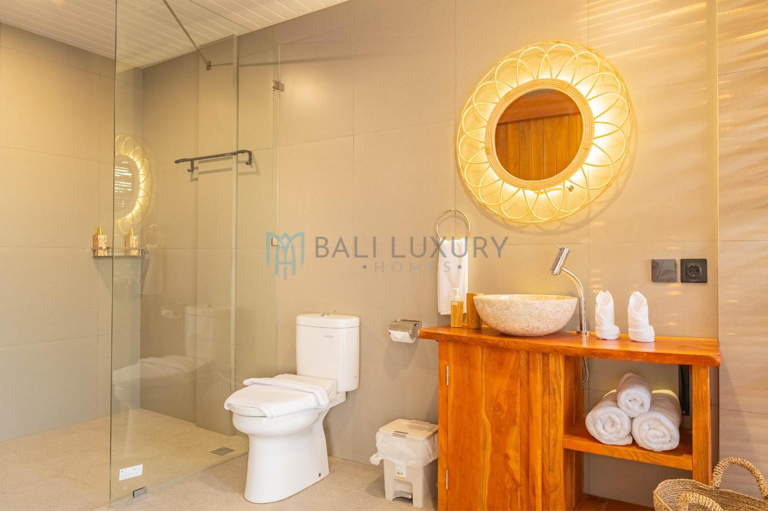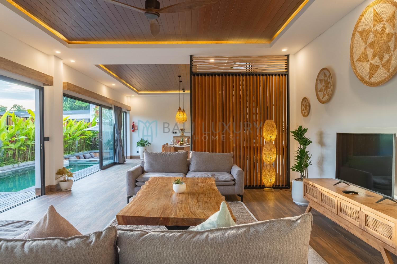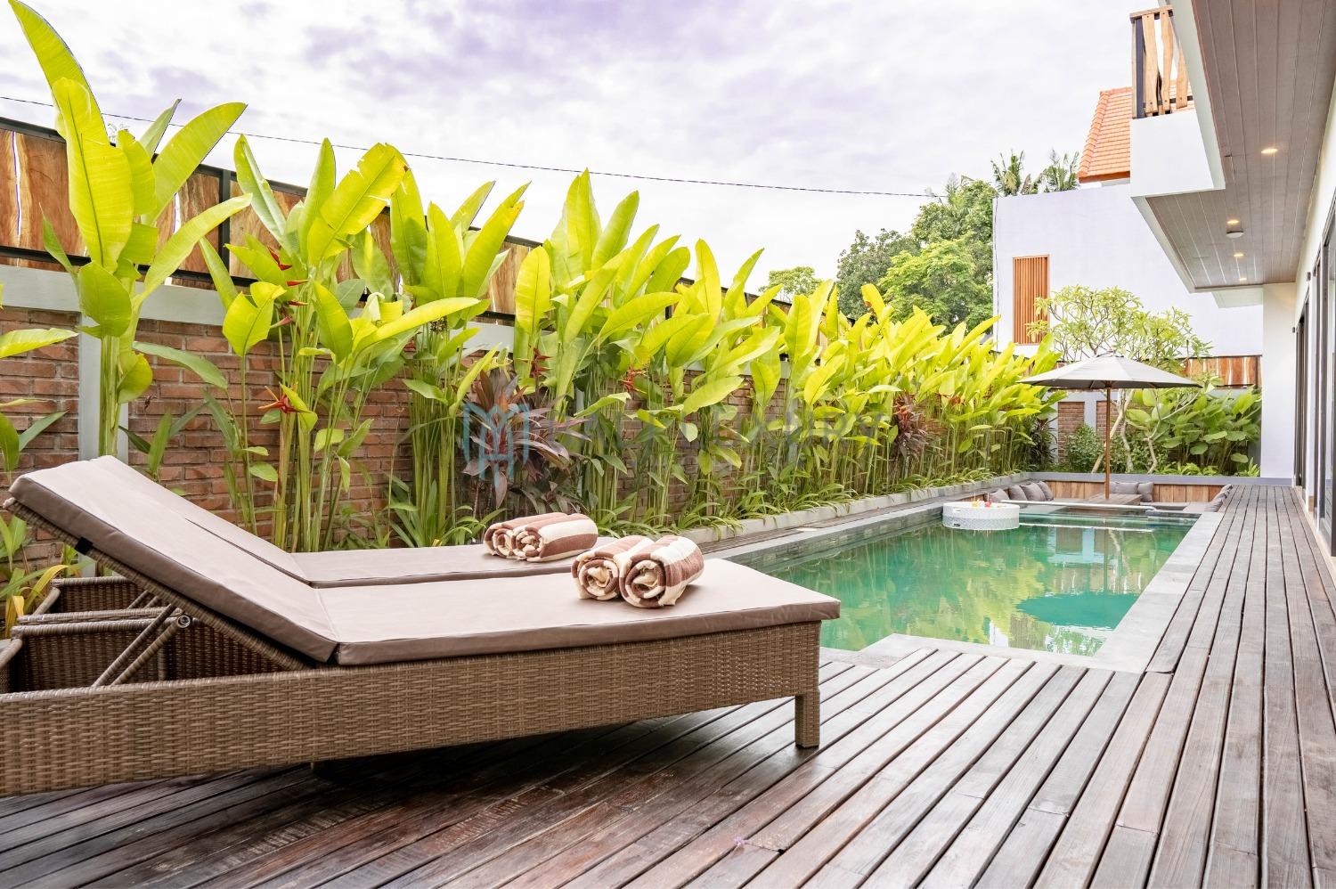 Discover your tropical retreat in Tumbak Bayuh, just 10 minutes drive to Pererenan Beach and 5 minutes away from Obsidian Gym Pererenan. This charming 2-bedroom villa blends modern comfort with Balinese charm, creating the perfect sanctuary for relaxation and remote living. The villa features a bright open dining area on the ground floor, seamlessly connected to a fully equipped kitchen and the private swimming pool surrounded by tropical greenery. Upstairs, you’ll find a cozy living room with a TV, ideal for unwinding after a long day or enjoying movie nights in comfort. Each bedroom is air-conditioned and designed for rest and privacy, complete with ensuite bathrooms and soft natural lighting. The villa’s thoughtful layout offers a smooth indoor-outdoor flow, creating an inviting atmosphere for both leisure and work.