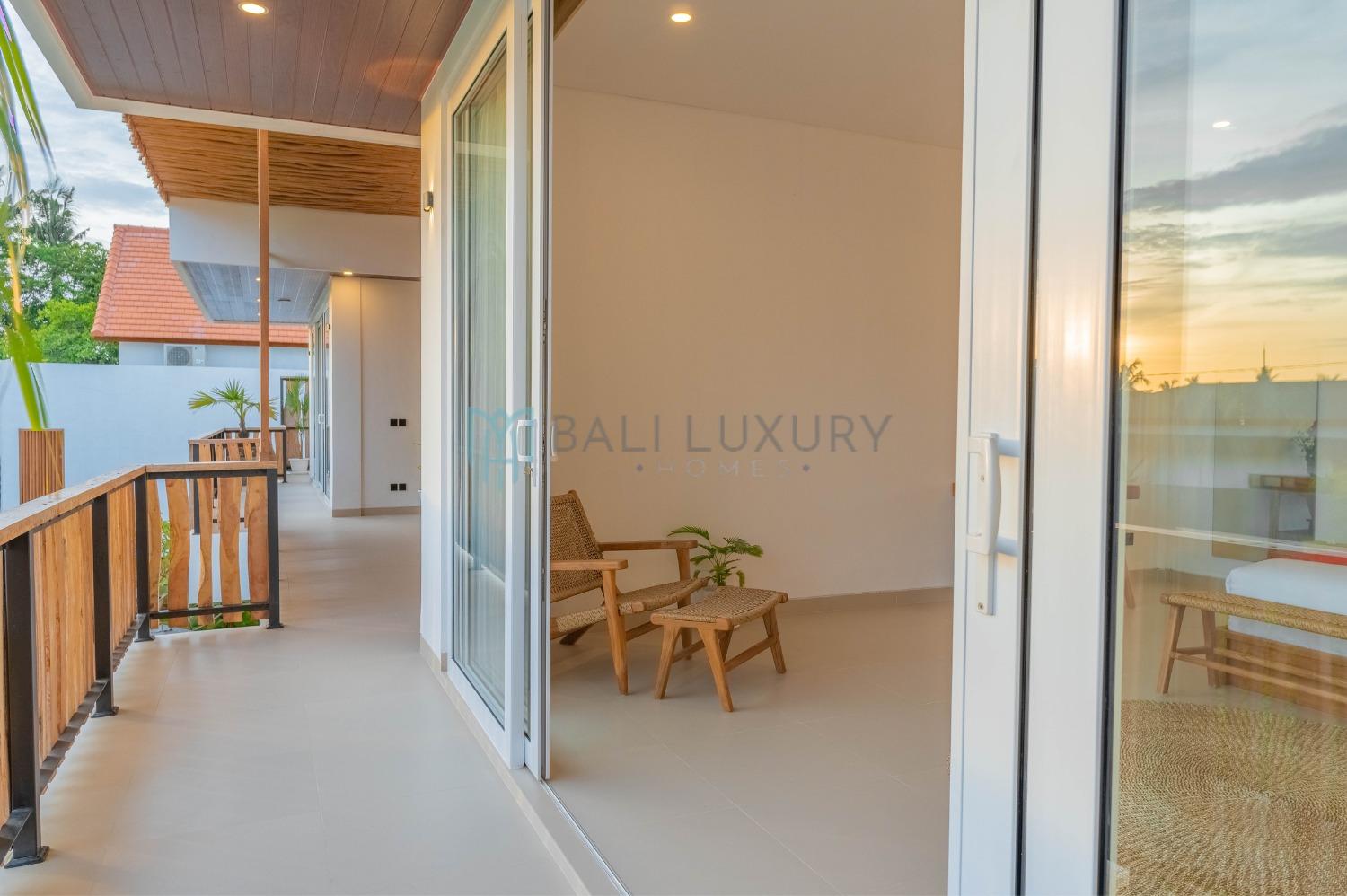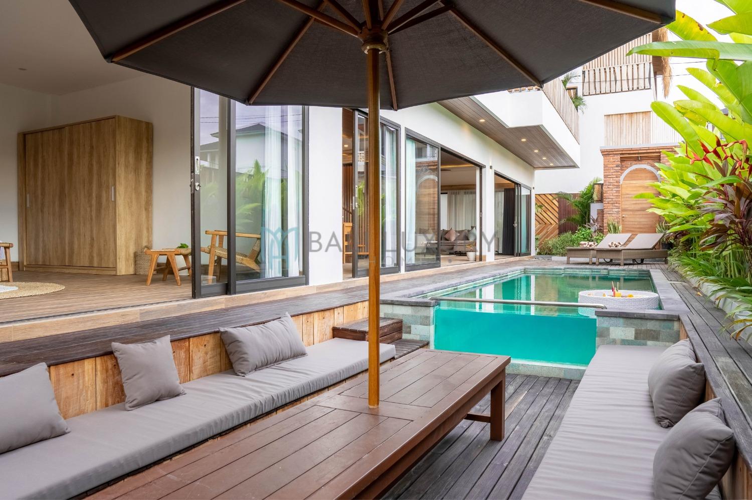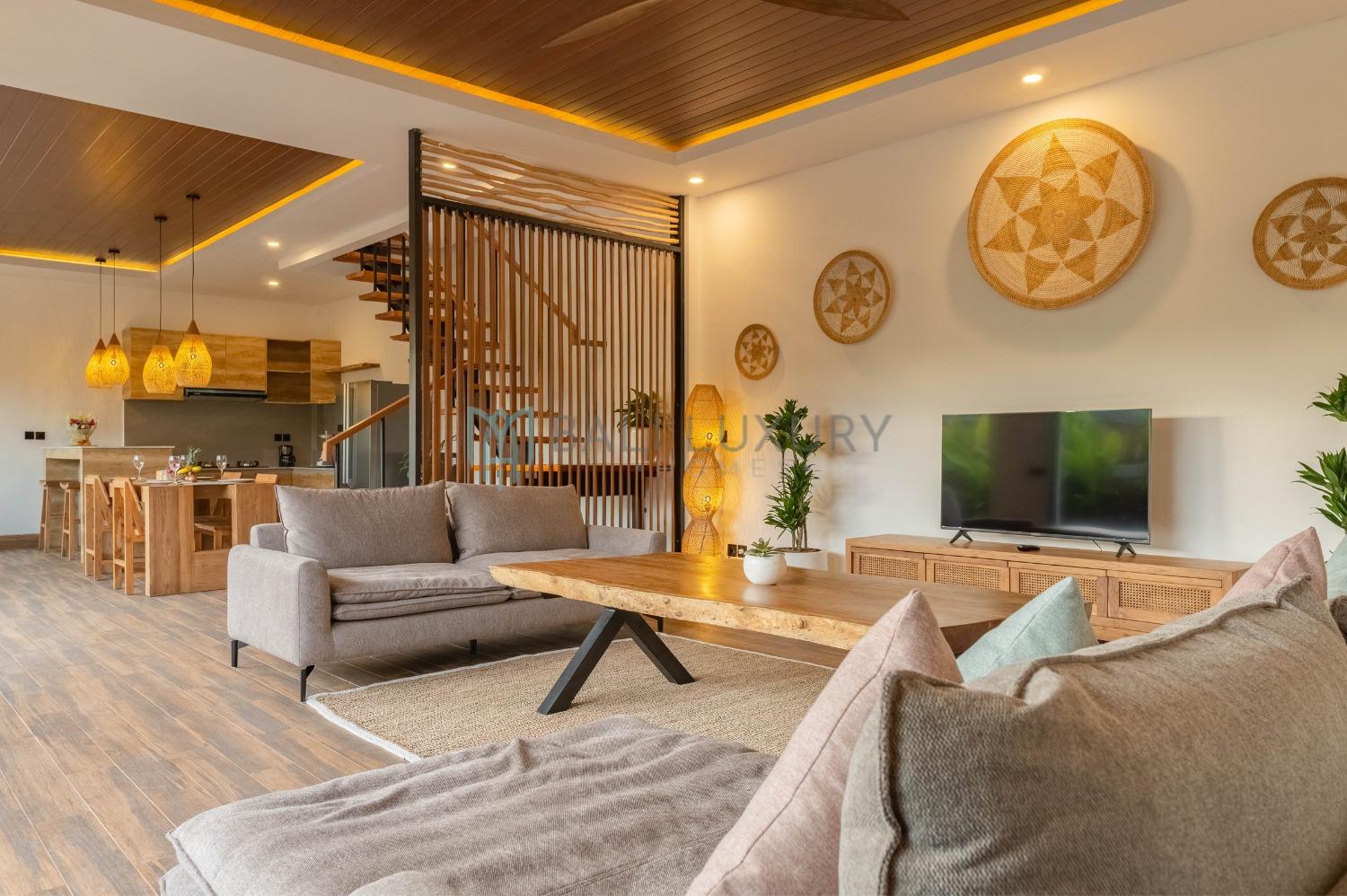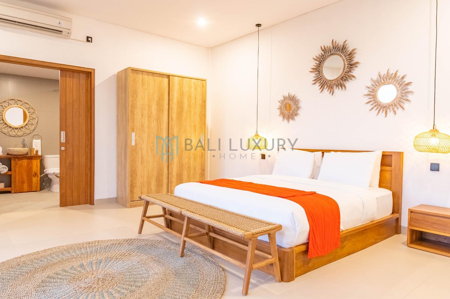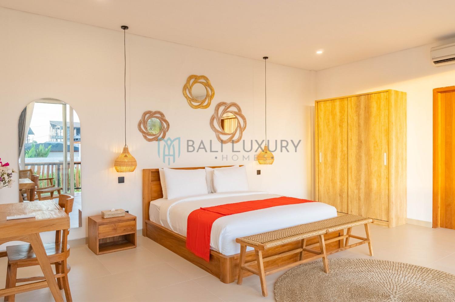 Discover your tropical retreat in Tumbak Bayuh, just 10 minutes drive to Pererenan Beach and 5 minutes away from Obsidian Gym Pererenan. This charming 2-bedroom villa blends modern comfort with Balinese charm, creating the perfect sanctuary for relaxation and remote living. The villa features a bright open dining area on the ground floor, seamlessly connected to a fully equipped kitchen and the private swimming pool surrounded by tropical greenery. Upstairs, you’ll find a cozy living room with a TV, ideal for unwinding after a long day or enjoying movie nights in comfort. Each bedroom is air-conditioned and designed for rest and privacy, complete with ensuite bathrooms and soft natural lighting. The villa’s thoughtful layout offers a smooth indoor-outdoor flow, creating an inviting atmosphere for both leisure and work.