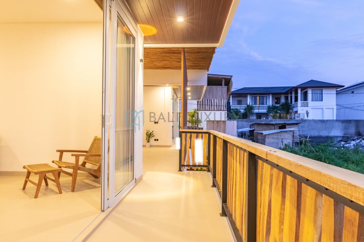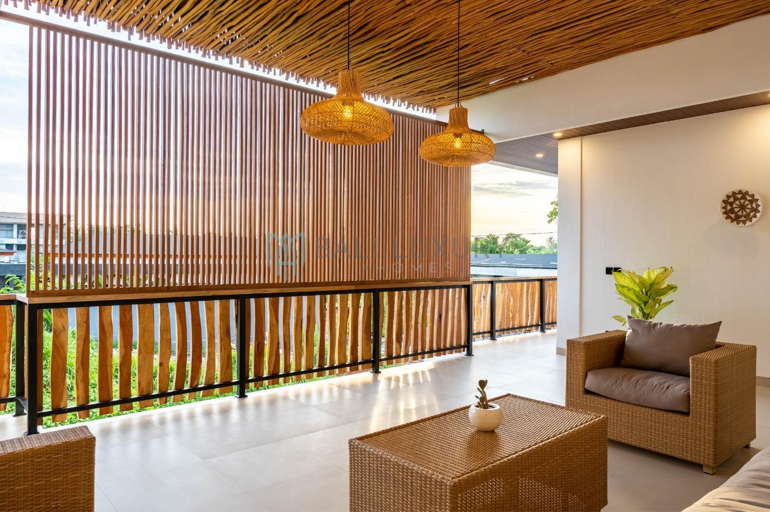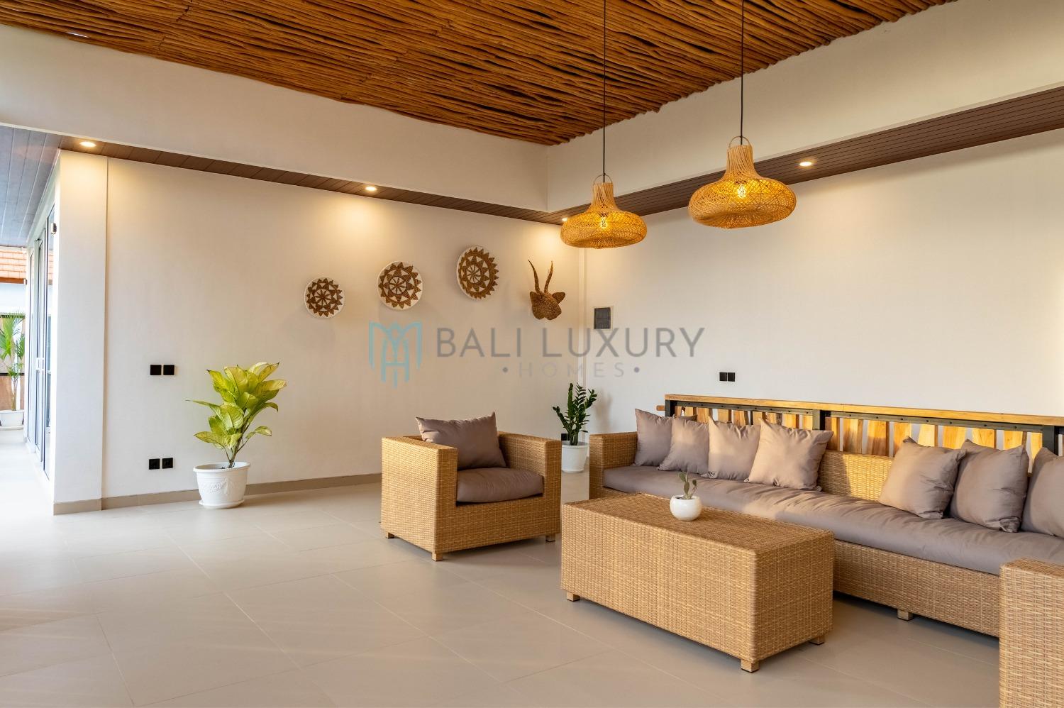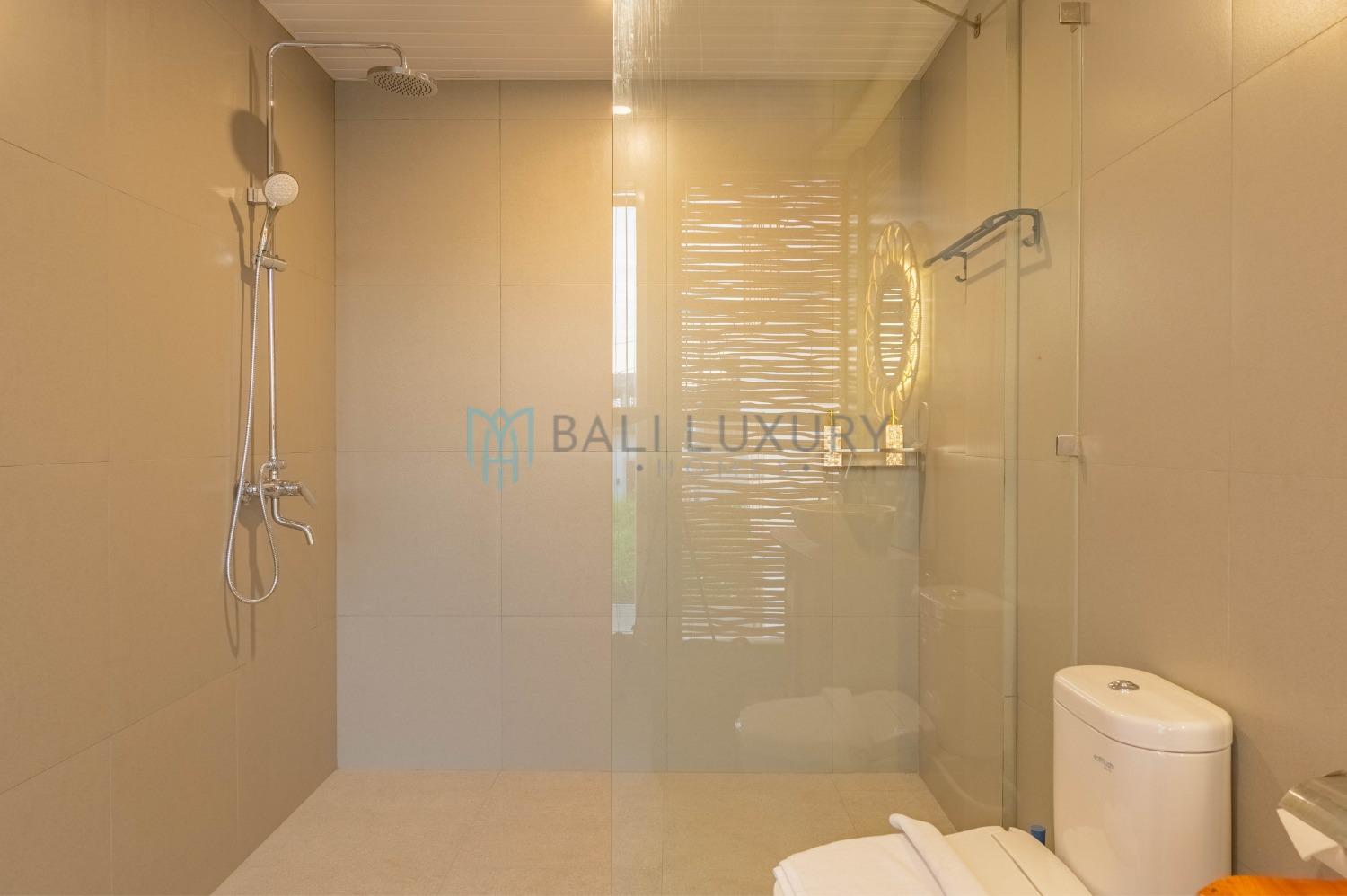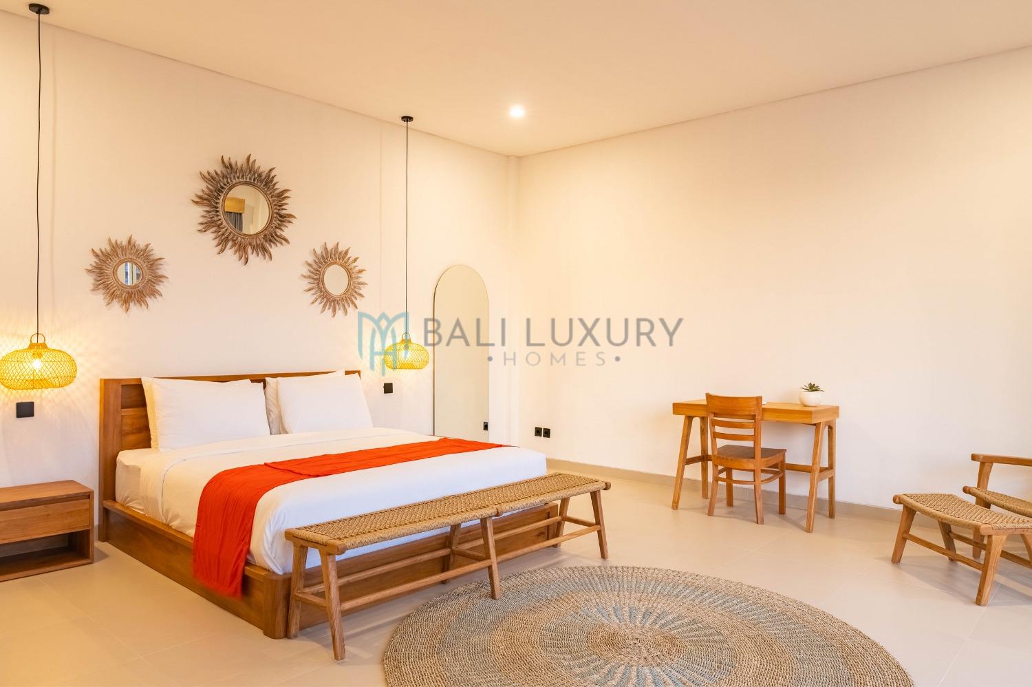 Discover your tropical retreat in Tumbak Bayuh, just 10 minutes drive to Pererenan Beach and 5 minutes away from Obsidian Gym Pererenan. This charming 2-bedroom villa blends modern comfort with Balinese charm, creating the perfect sanctuary for relaxation and remote living. The villa features a bright open dining area on the ground floor, seamlessly connected to a fully equipped kitchen and the private swimming pool surrounded by tropical greenery. Upstairs, you’ll find a cozy living room with a TV, ideal for unwinding after a long day or enjoying movie nights in comfort. Each bedroom is air-conditioned and designed for rest and privacy, complete with ensuite bathrooms and soft natural lighting. The villa’s thoughtful layout offers a smooth indoor-outdoor flow, creating an inviting atmosphere for both leisure and work.