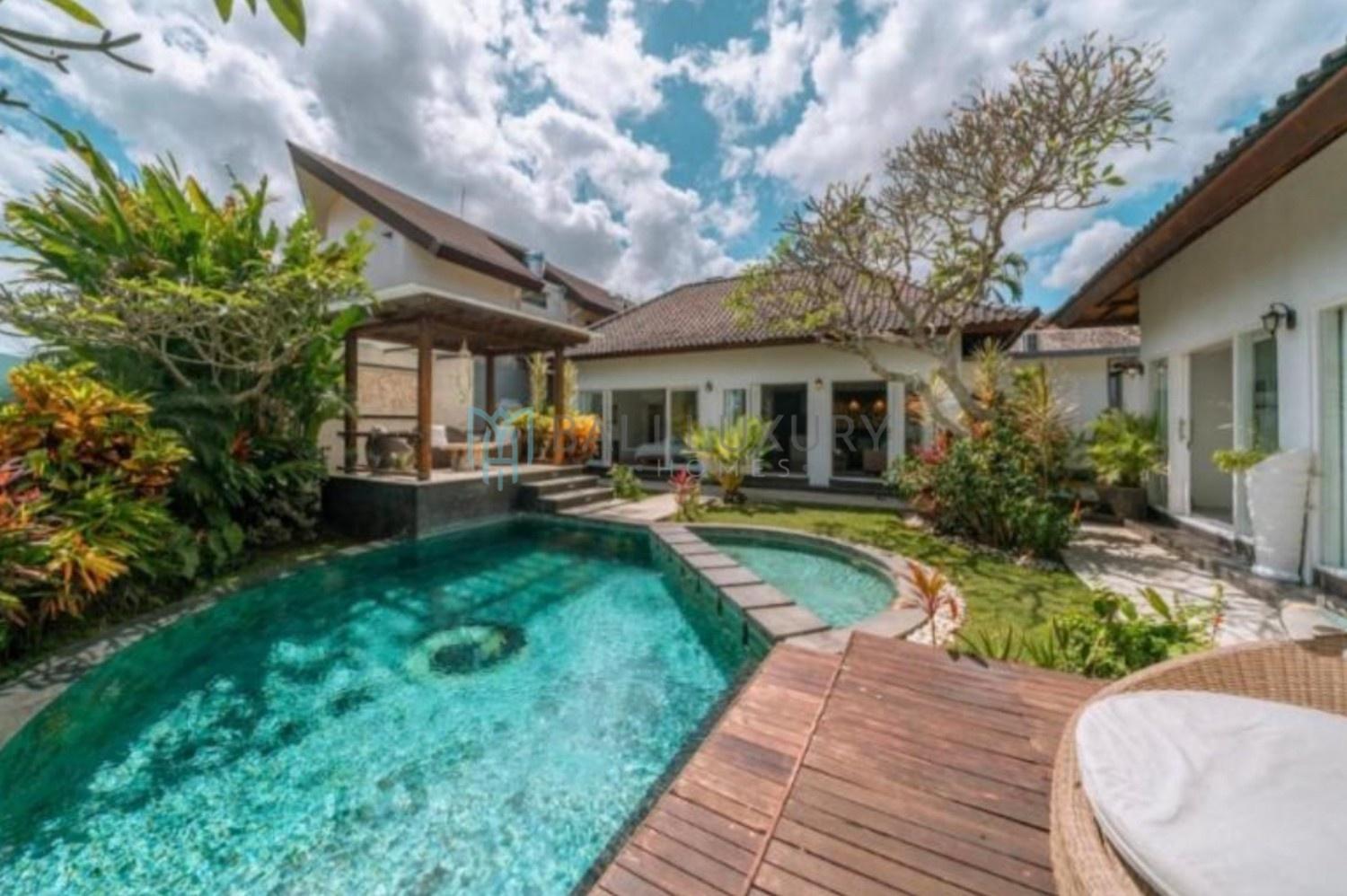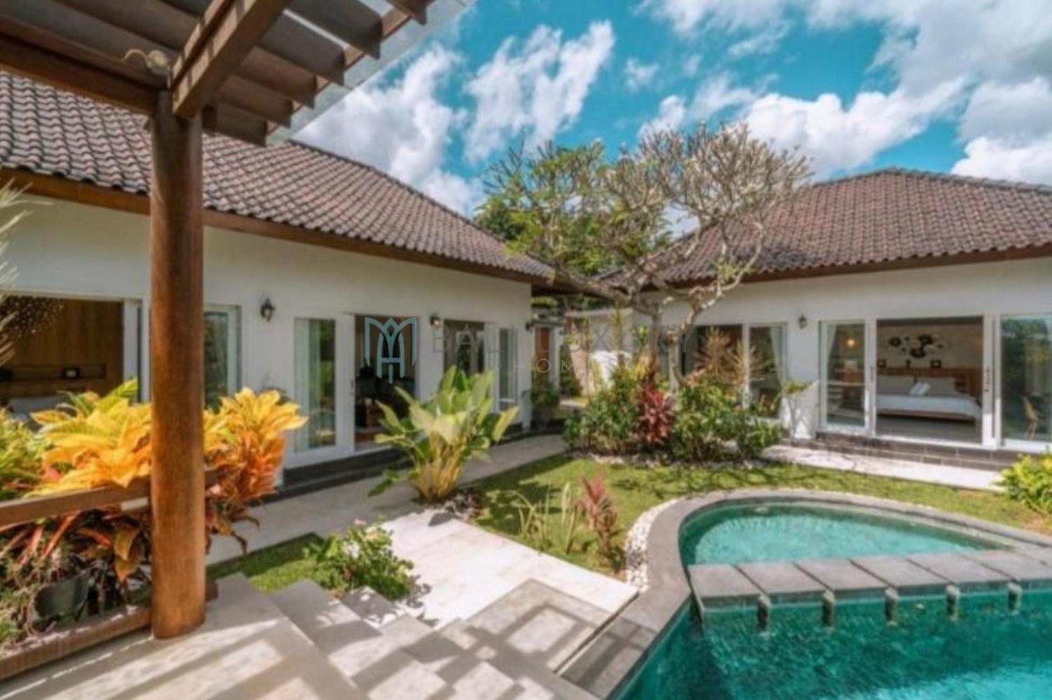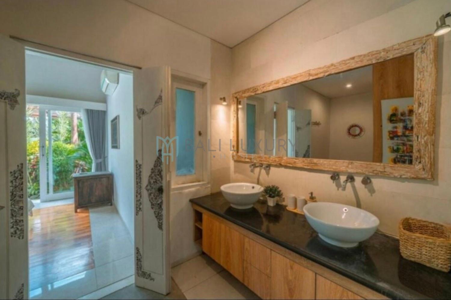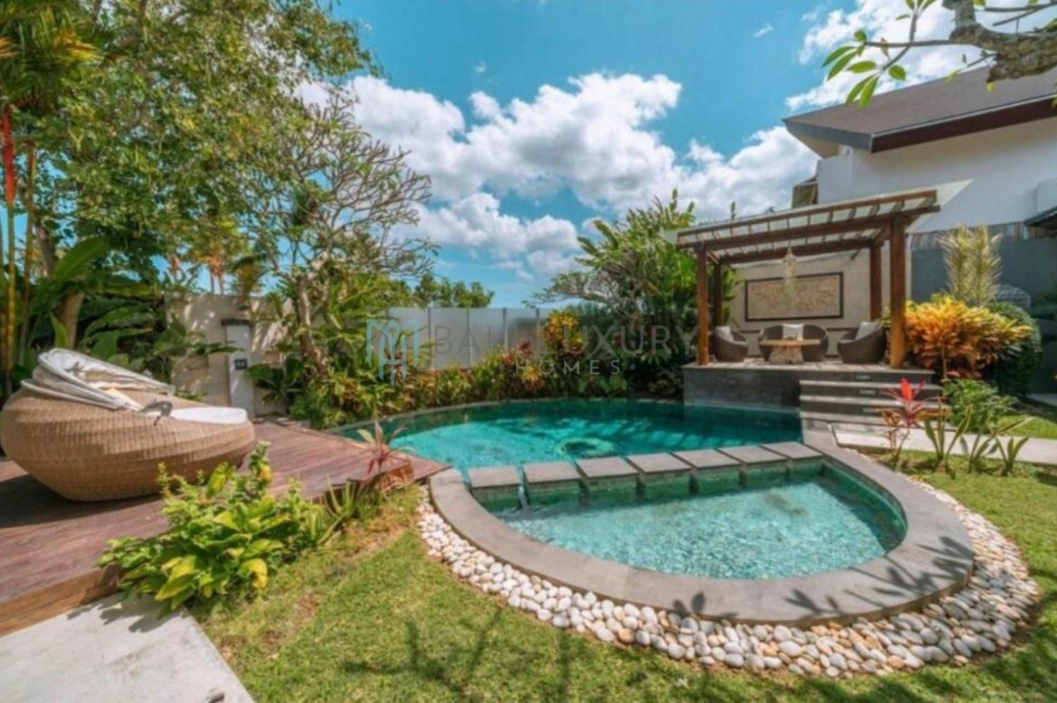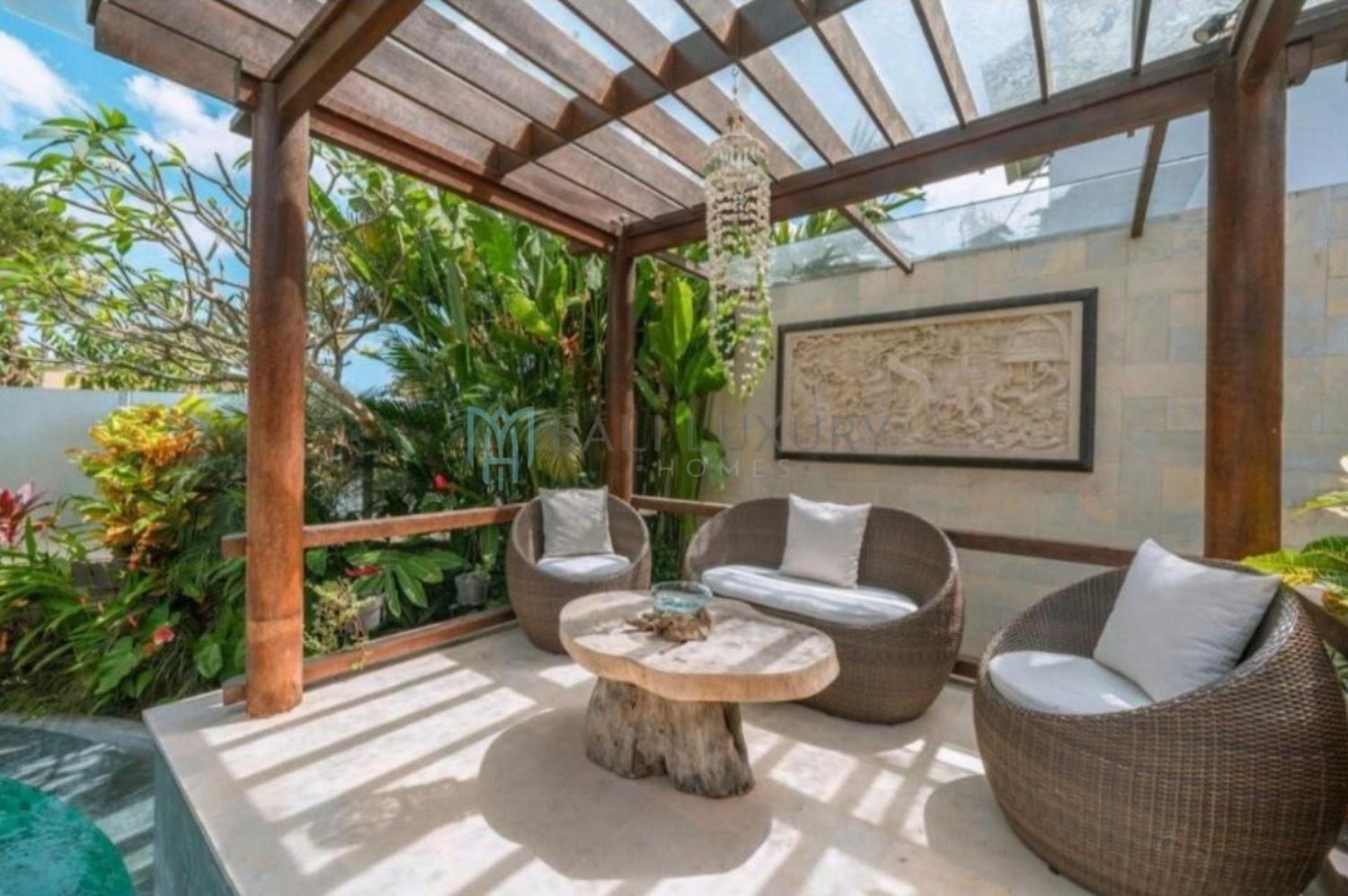 Discover this charming 3-bedroom tropical-modern villa, located in Berawa, one of Canggu’s most desirable neighborhoods. Designed with a blend of natural elements and modern comfort, the villa features an enclosed living area that offers both style and practicality, perfect for Bali’s tropical lifestyle. Step outside to a lush, beautifully landscaped garden complete with a cozy gazebo, an ideal spot to relax or enjoy the breeze. The private swimming pool faces a peaceful rice field view, creating a serene backdrop for your daily escape. Located in a prime area, you’re just a 7-minute drive to Berawa Beach and the famous Finns Beach Club. Surrounded by popular cafes, restaurants, and boutique shops, everything you need is within easy reach.
