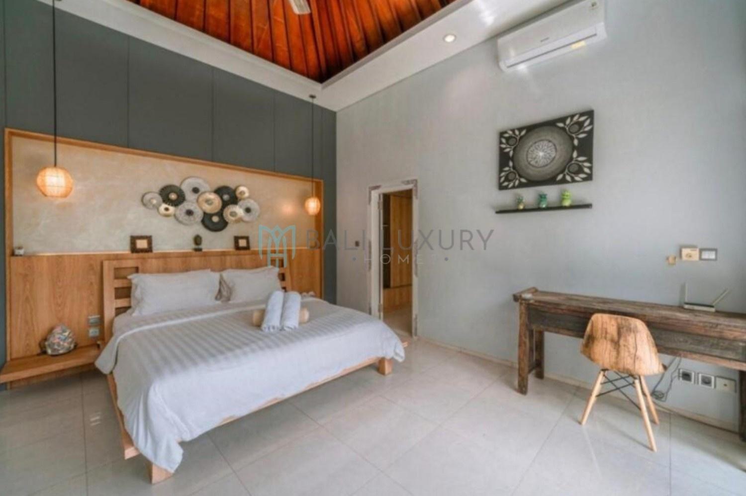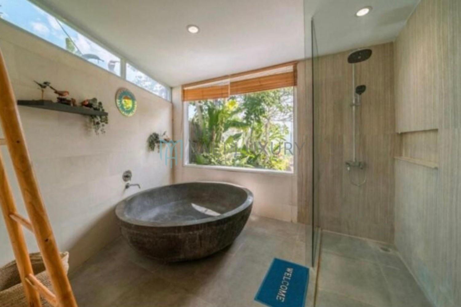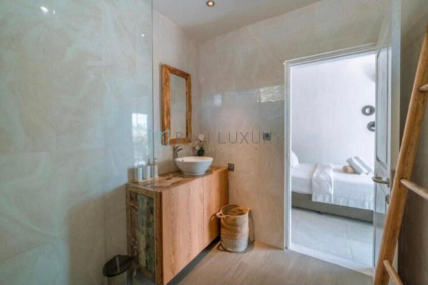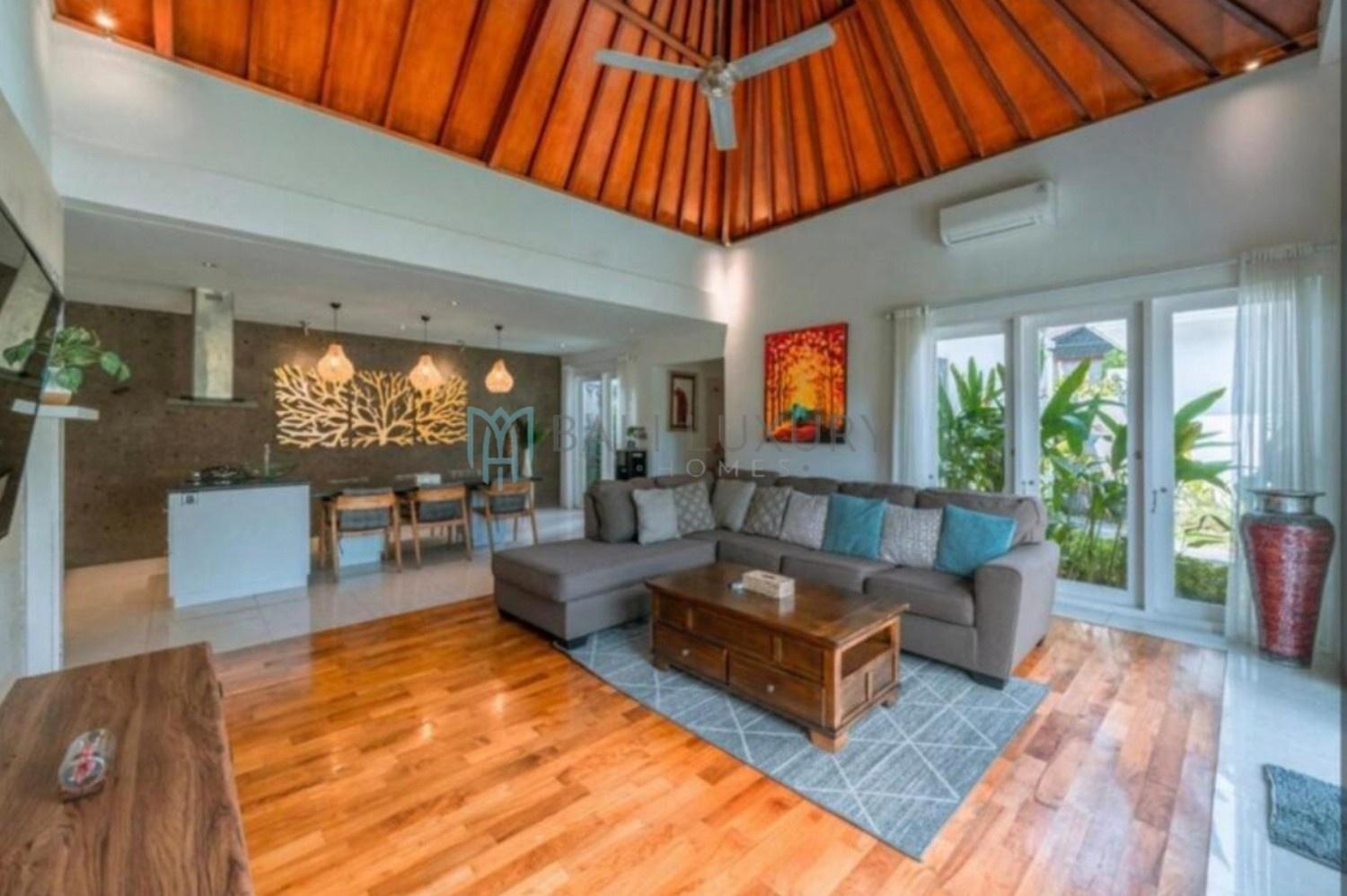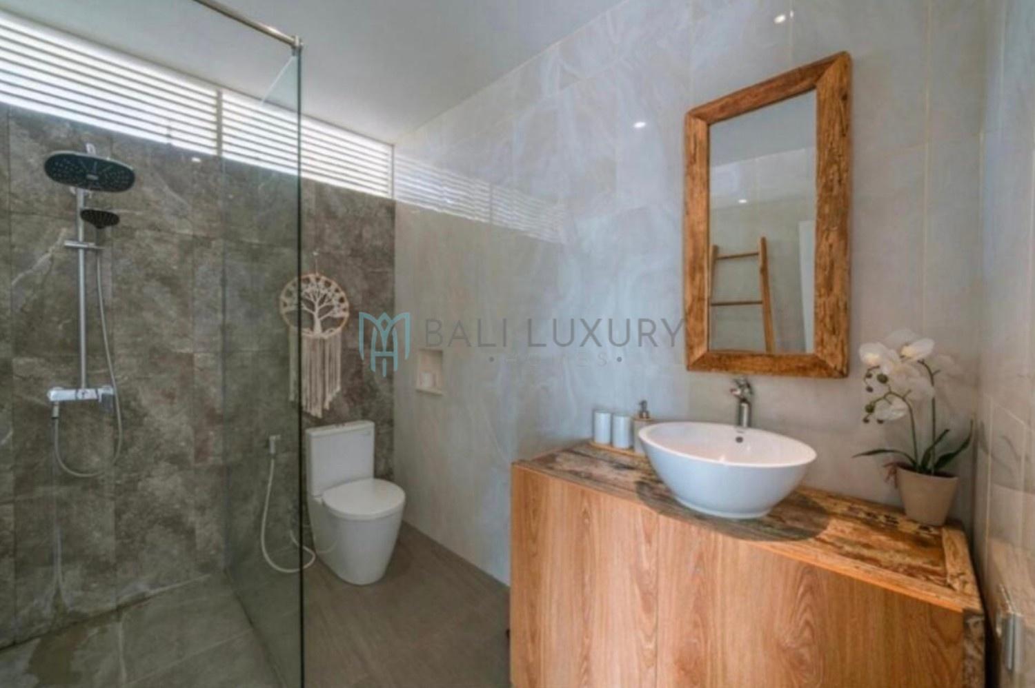 Discover this charming 3-bedroom tropical-modern villa, located in Berawa, one of Canggu’s most desirable neighborhoods. Designed with a blend of natural elements and modern comfort, the villa features an enclosed living area that offers both style and practicality, perfect for Bali’s tropical lifestyle. Step outside to a lush, beautifully landscaped garden complete with a cozy gazebo, an ideal spot to relax or enjoy the breeze. The private swimming pool faces a peaceful rice field view, creating a serene backdrop for your daily escape. Located in a prime area, you’re just a 7-minute drive to Berawa Beach and the famous Finns Beach Club. Surrounded by popular cafes, restaurants, and boutique shops, everything you need is within easy reach.