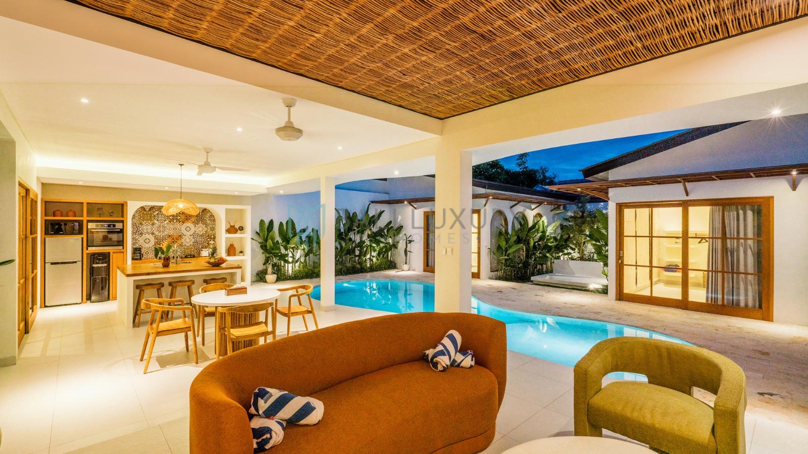 Discover this charming tropical 3-bedroom villa located in the heart of Berawa, one of Canggu’s most sought-after neighborhoods. Featuring three spacious bedrooms, each with ensuite bathrooms, and an open-plan living and dining area that flows seamlessly toward the poolside terrace, this villa captures the essence of Bali’s indoor–outdoor lifestyle. Conveniently situated close to Berawa’s popular cafés, gyms, and just 6 minute's drive to Berawa Beach. This villa offers both comfort and accessibility, ideal for families, expats, or long-term residents.